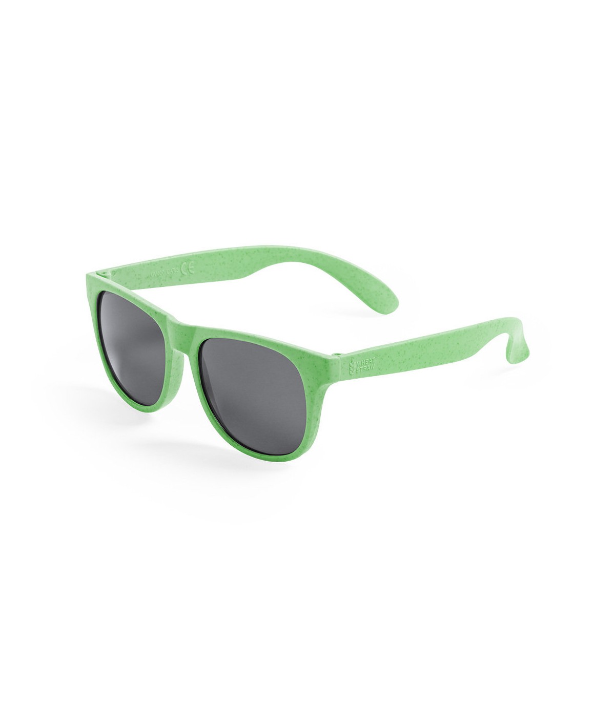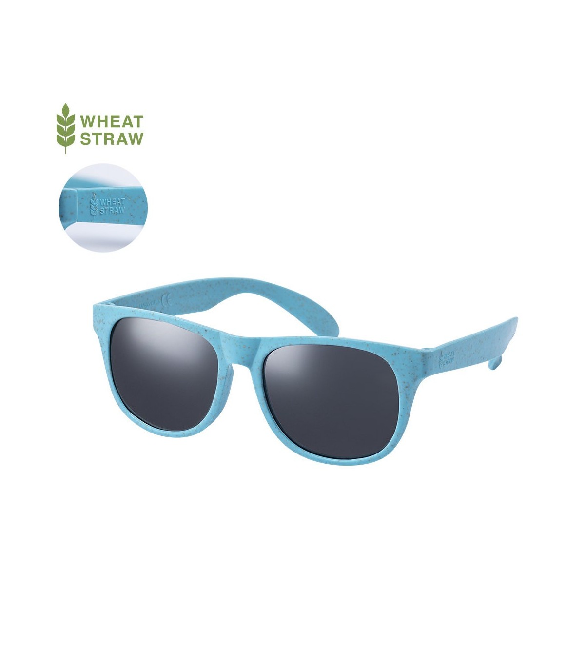 Gafas de sol de fabricación ecológica con protección UV400 y lentes en color negro. Montura y patas elaboradas en caña de trigo con distintivo Wheat Straw, para así fomentar la utilización de materias primas naturales y reducir las emisiones contaminantes.. Disponibles en variada gama de colores y presentadas en atractivo estuche de diseño eco.