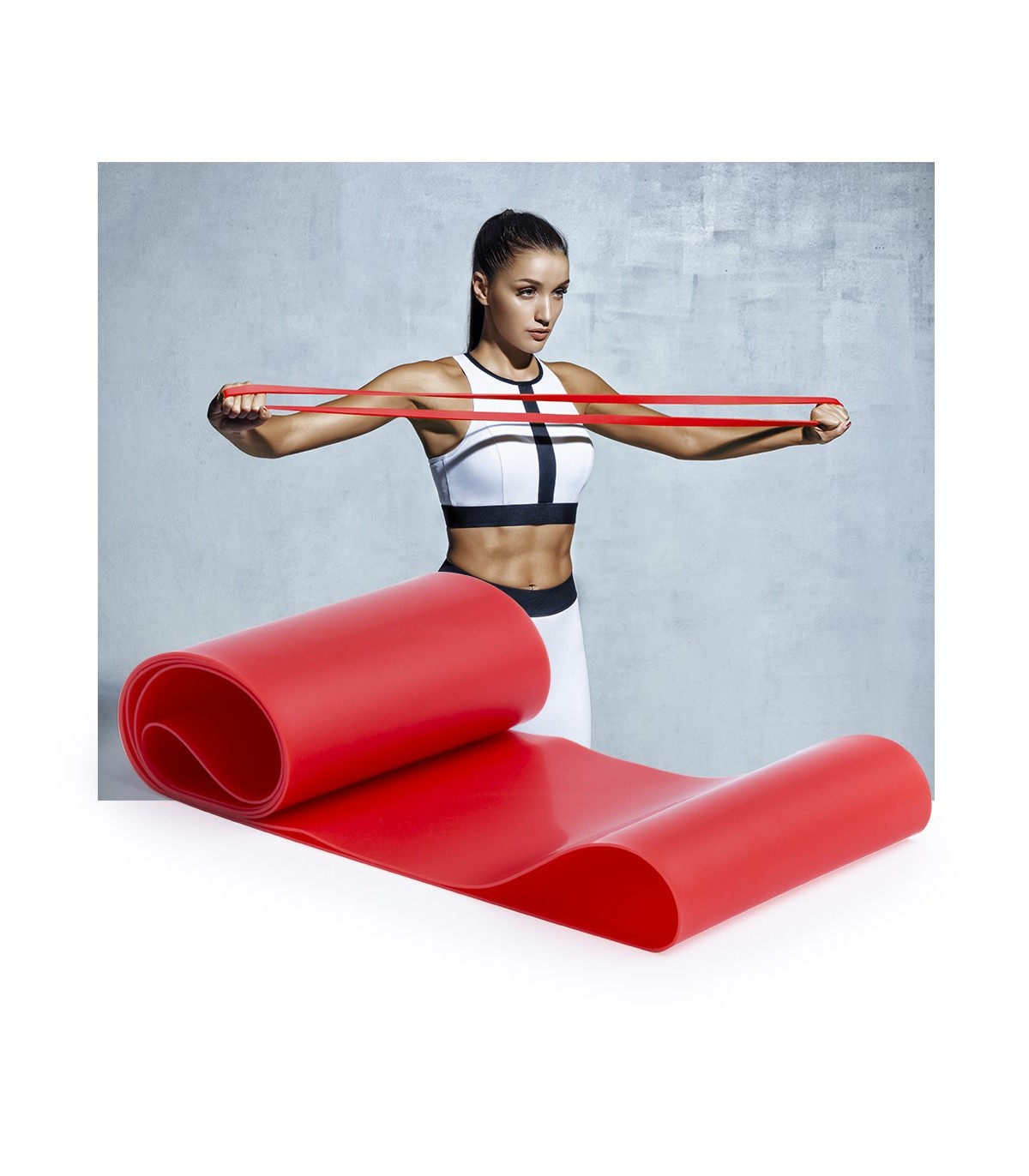 Goma elástica para fitness. Fabricada en látex de alta resistencia y disponible en variada gama de colores con acabado brillo.
