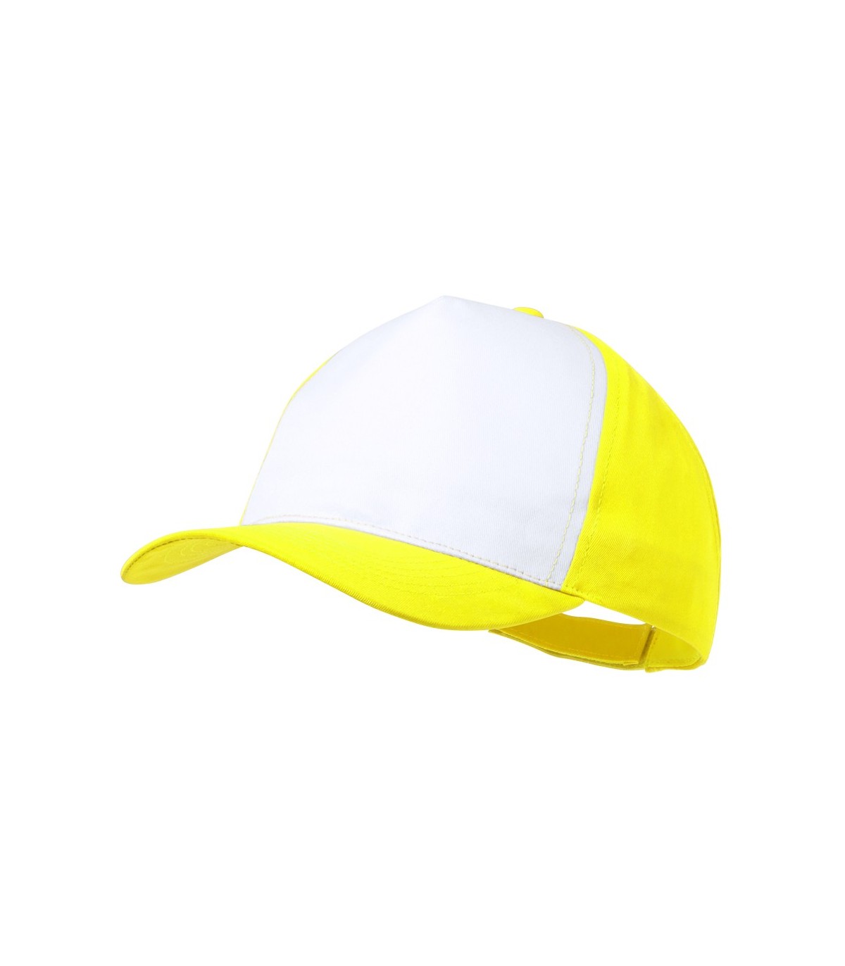 Gorra tipo trucker de 5 paneles en material 100% poliéster de suave acabado y cierre ajustable de velcro. Con frontal en color blanco y cuerpo/visera en varios colores para personalizar. Especialmente diseñada para marcaje en sublimación.