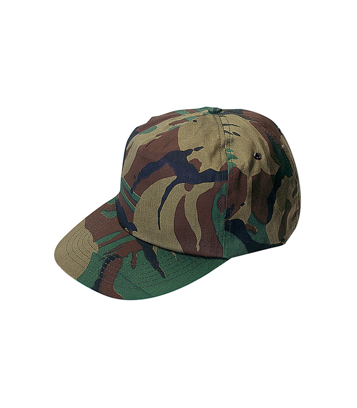 Gorra de 5 paneles en material 100% algodón y diseño de camuflaje. Con orificios de ventilación bordados y cierre ajustable de velcro.