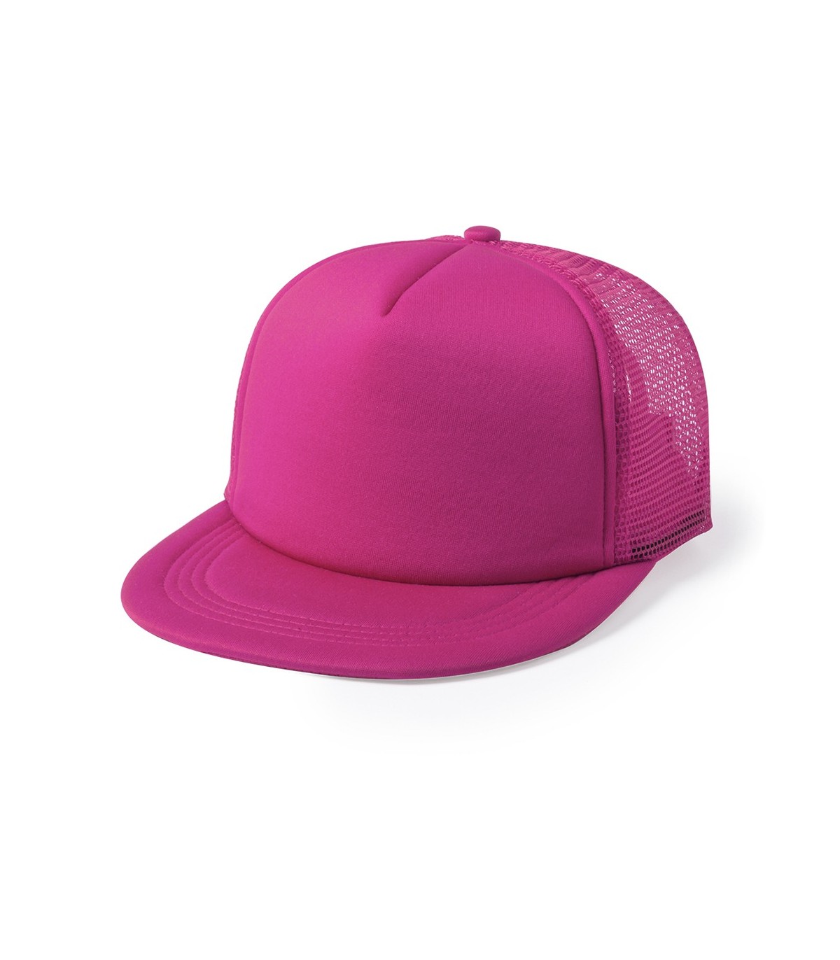 Gorra de 5 paneles con visera plana acolchada y parte trasera en redecilla a juego. Material 100% poliéster de suave acabado, con cierre ajustable de botones y en variada gama de vivos colores.