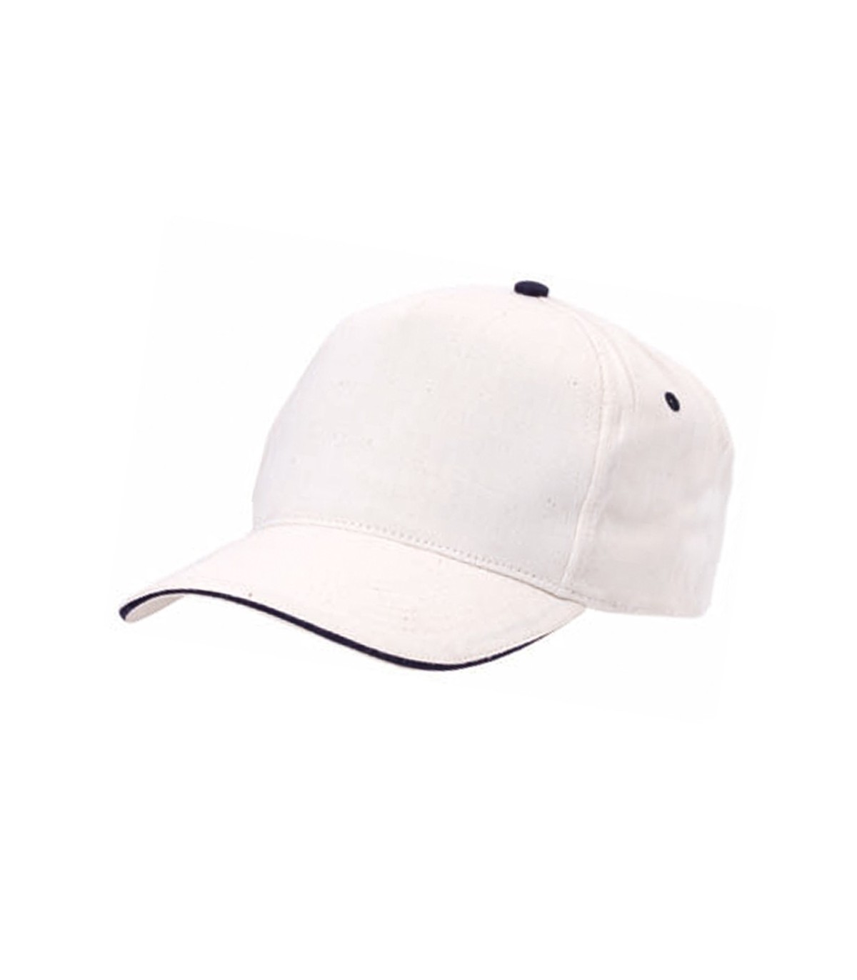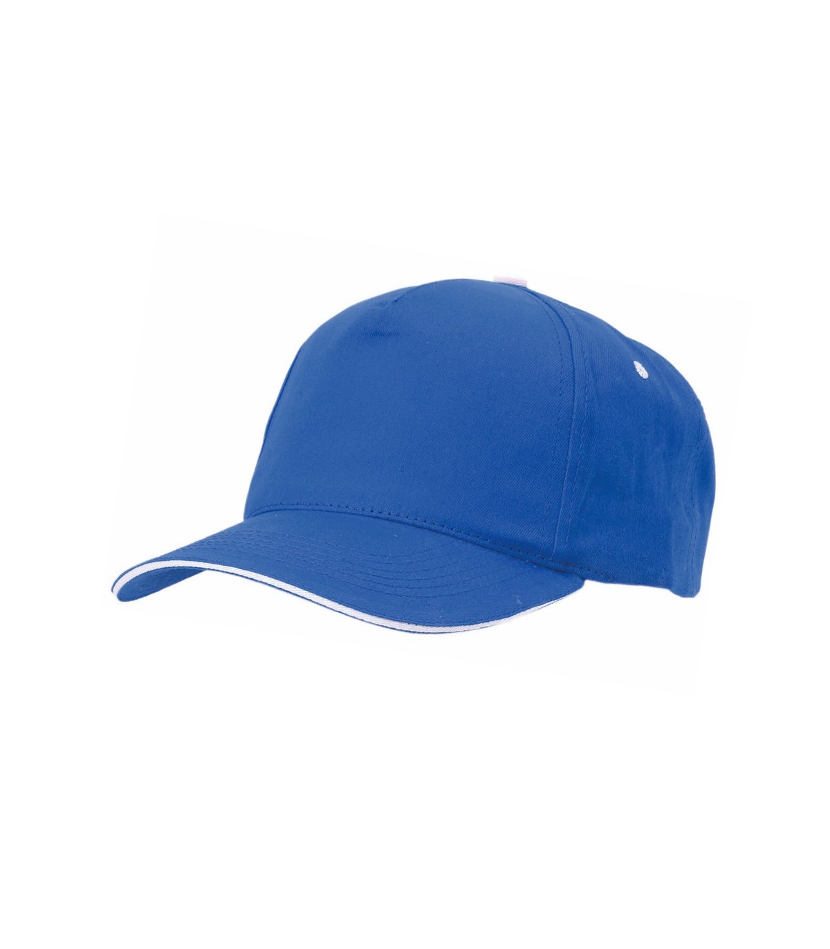 Gorra de 5 paneles en material 100% algodón peinado. En diferentes colores para personalizar con tu logo. Con sandwich en color blanco. Orificios de ventilación bordados y cierre ajustable de velcro.