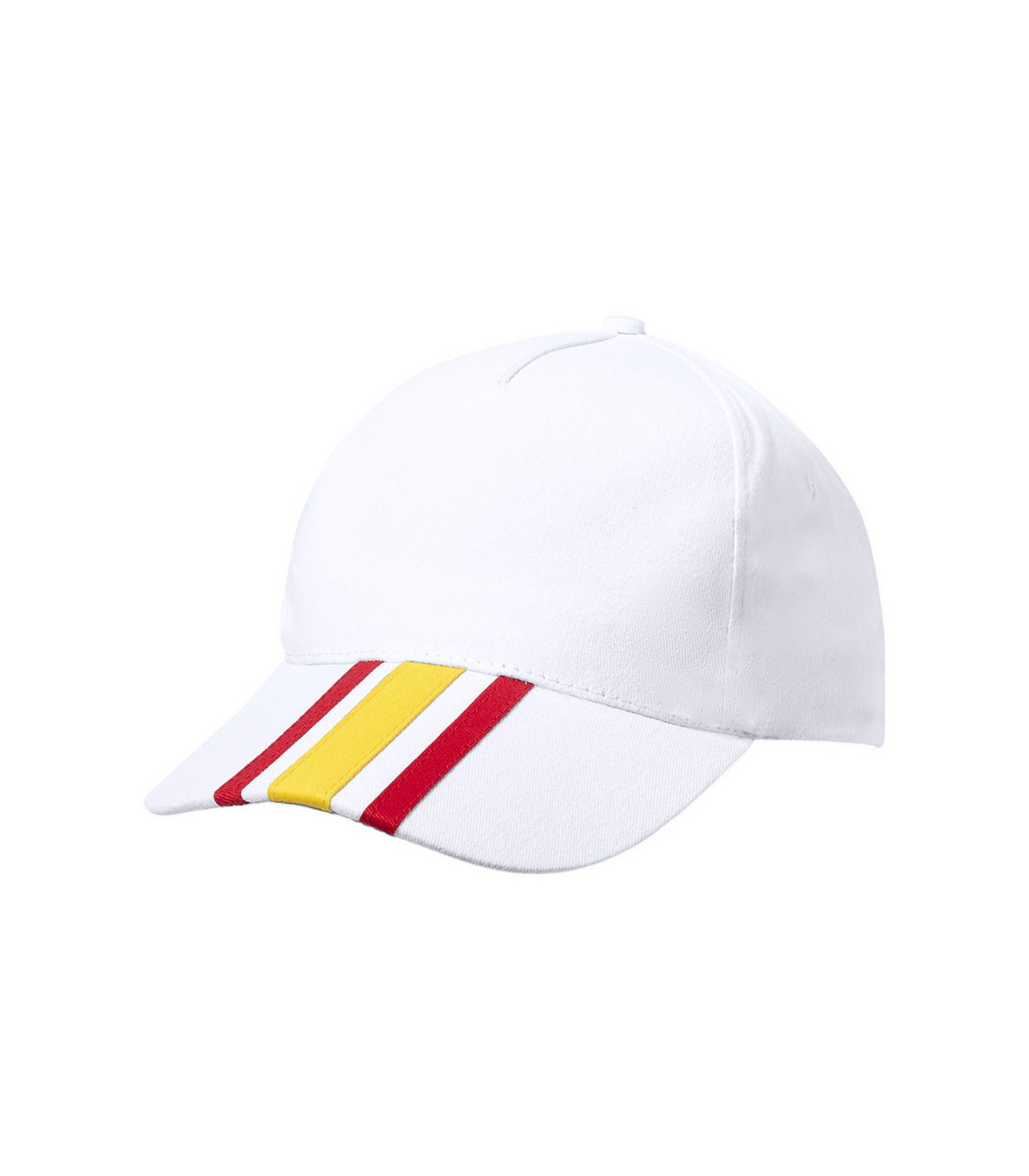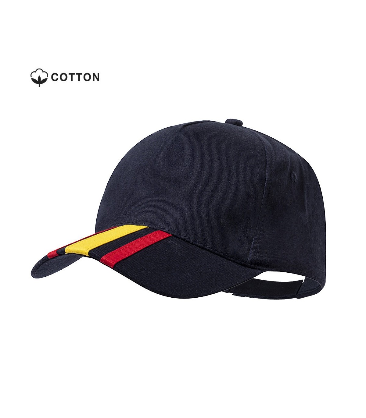 Gorras de original diseño España en material 100% algodón peinado. De 5 paneles y con cierre ajustable de velcro. Personalizadas para eventos con tu logo.