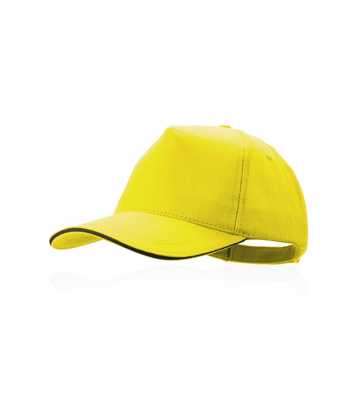 Gorra de 5 paneles en material 100% algodón peinado. En diferentes colores para personalizar con tu logo, con sandwich en color y acolchado en visera. Orificios de ventilación bordados y cierre ajustable de velcro.
