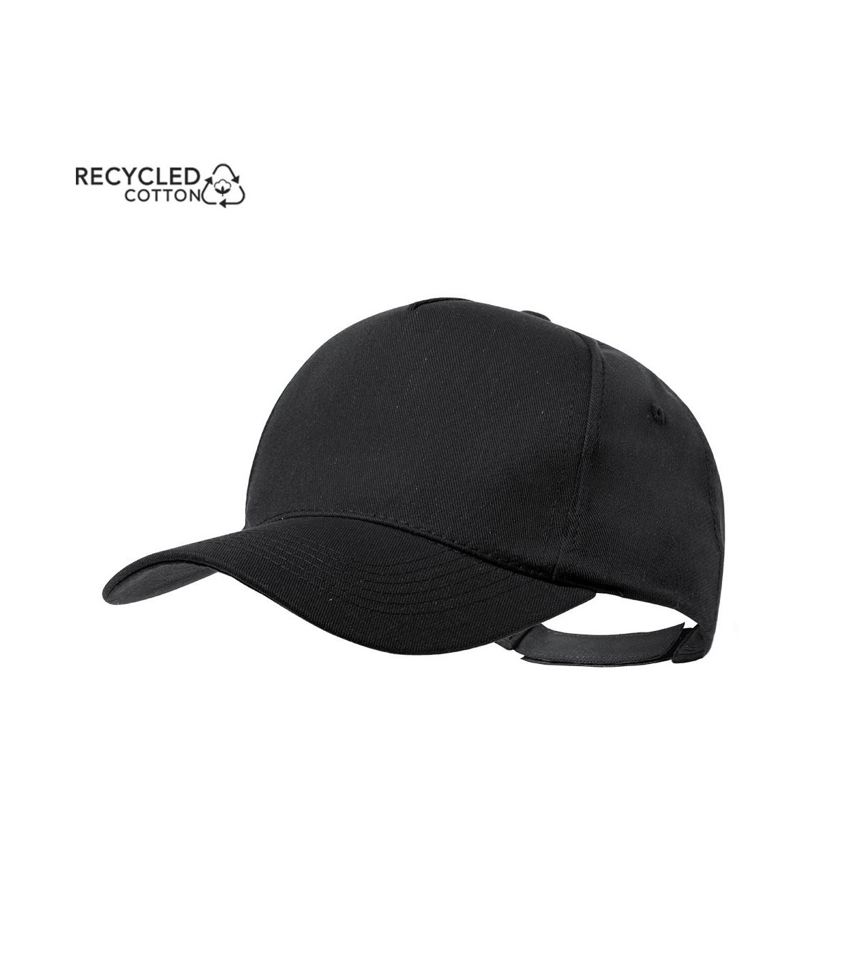 Gorras personalizadas ecológicas de 5 paneles, fabricada en combinación de algodón reciclado y poliéster reciclado. Con cierre ajustable de velcro.