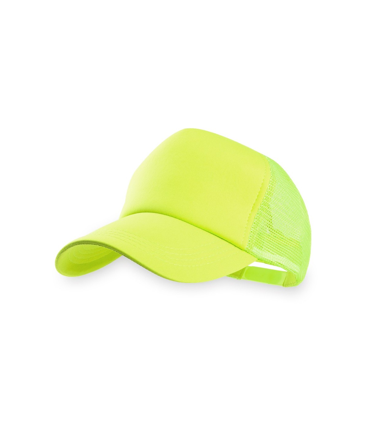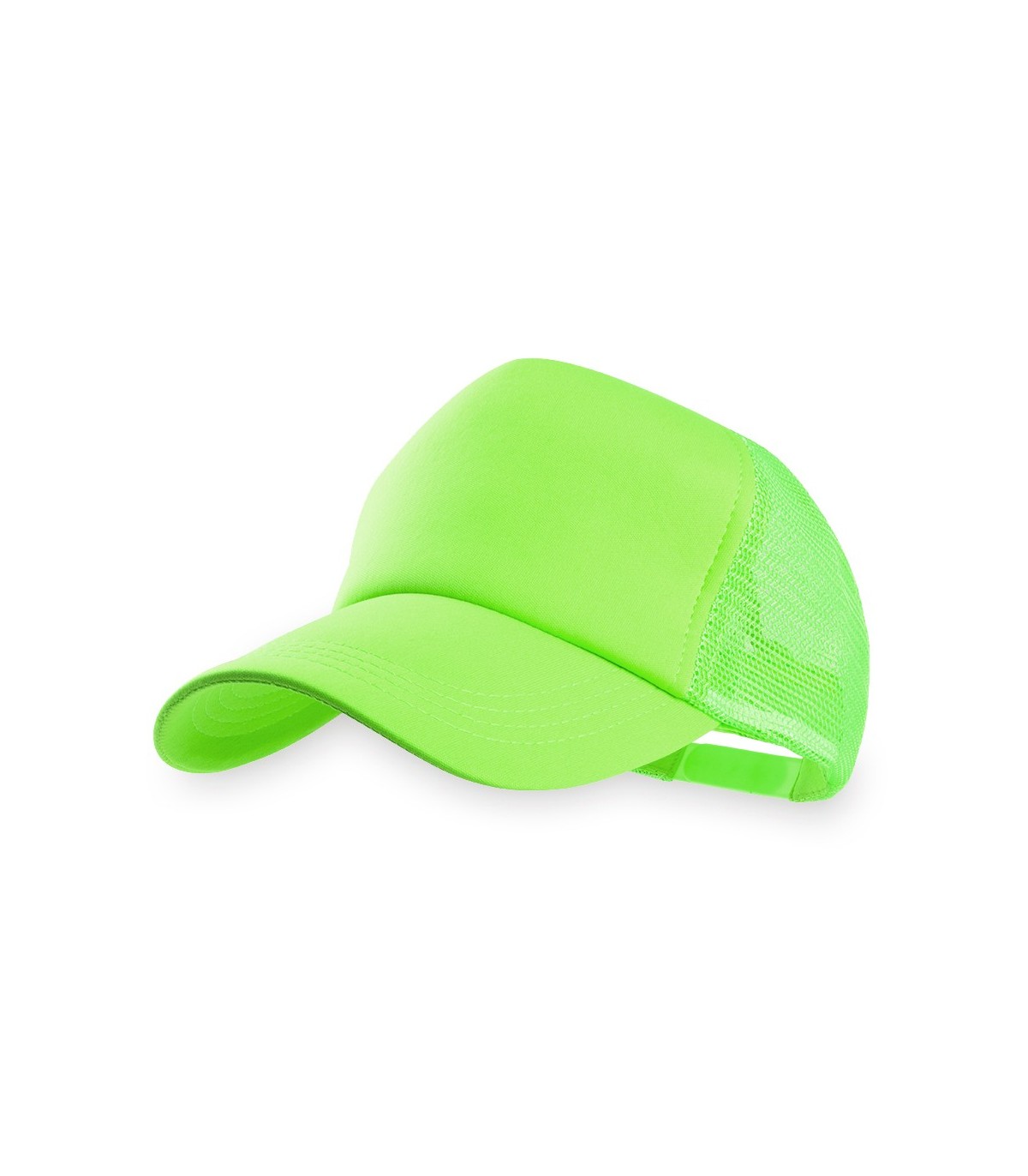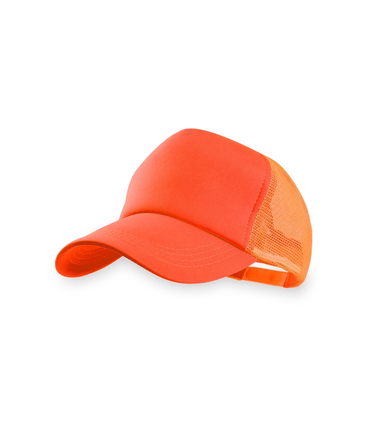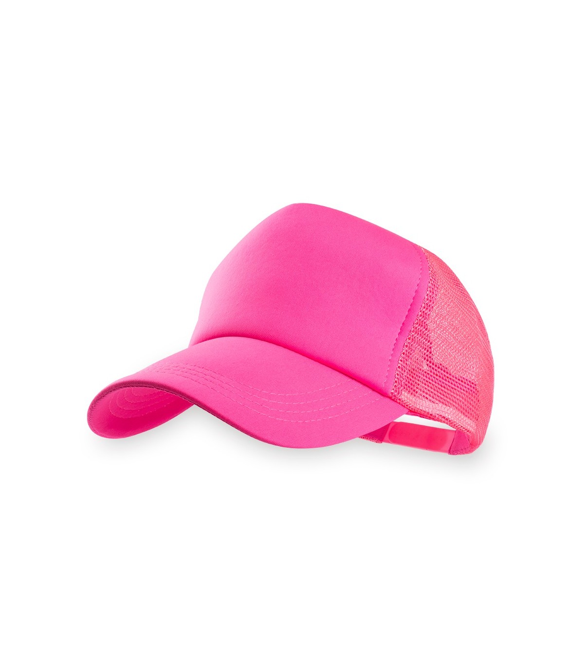 Gorra tipo trucker de 5 paneles en material 100% poliéster de suave acabado. En diferentes colores para personalizar con tu logo fluorescentes, con cuerpo en redecilla a juego y cierre ajustable de plástico.