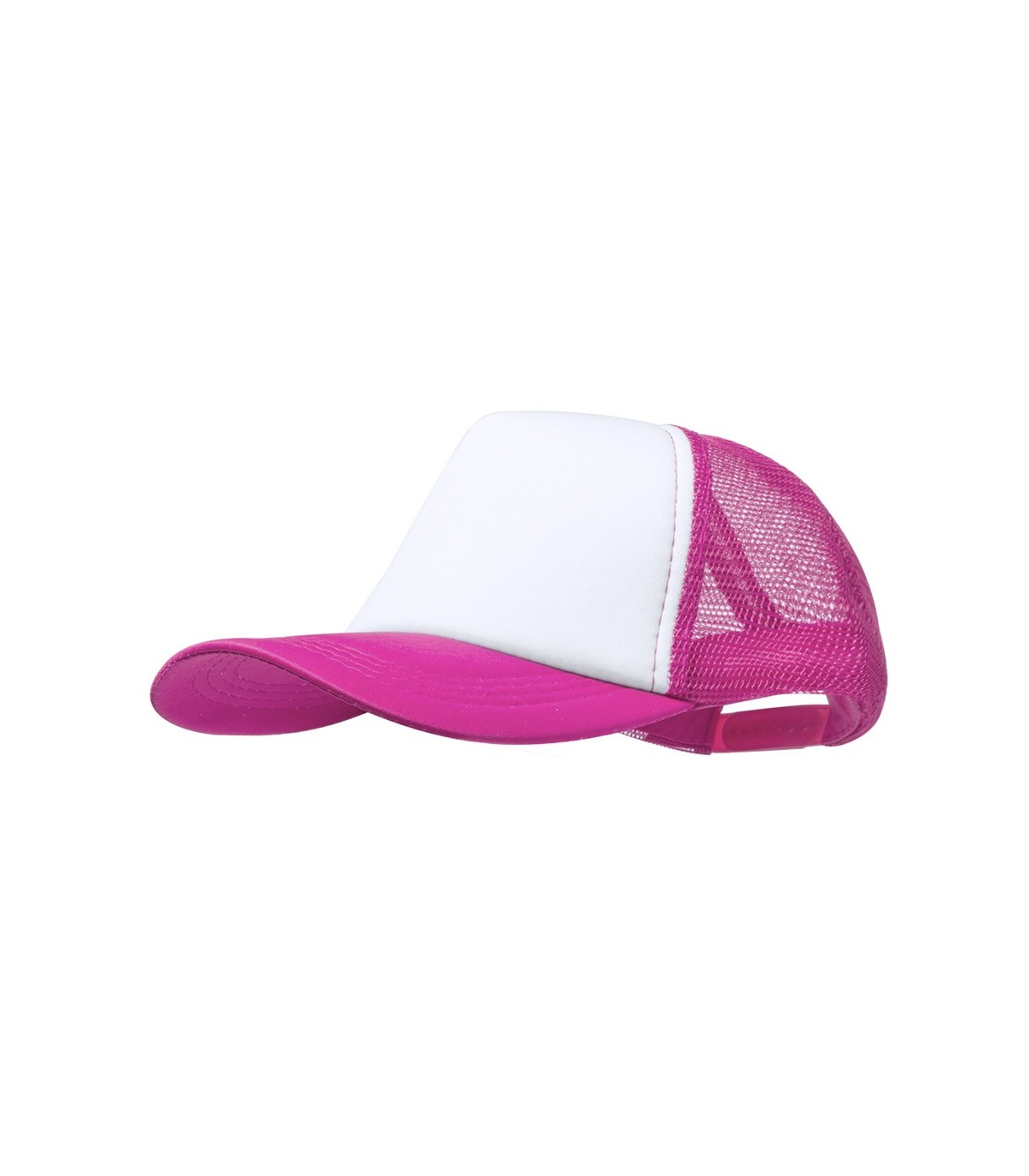 Gorra tipo trucker de 5 paneles en material 100% poliéster de suave acabado. En diferentes colores para personalizar con tu logo, con panel frontal en color blanco y cierre ajustable de plástico.