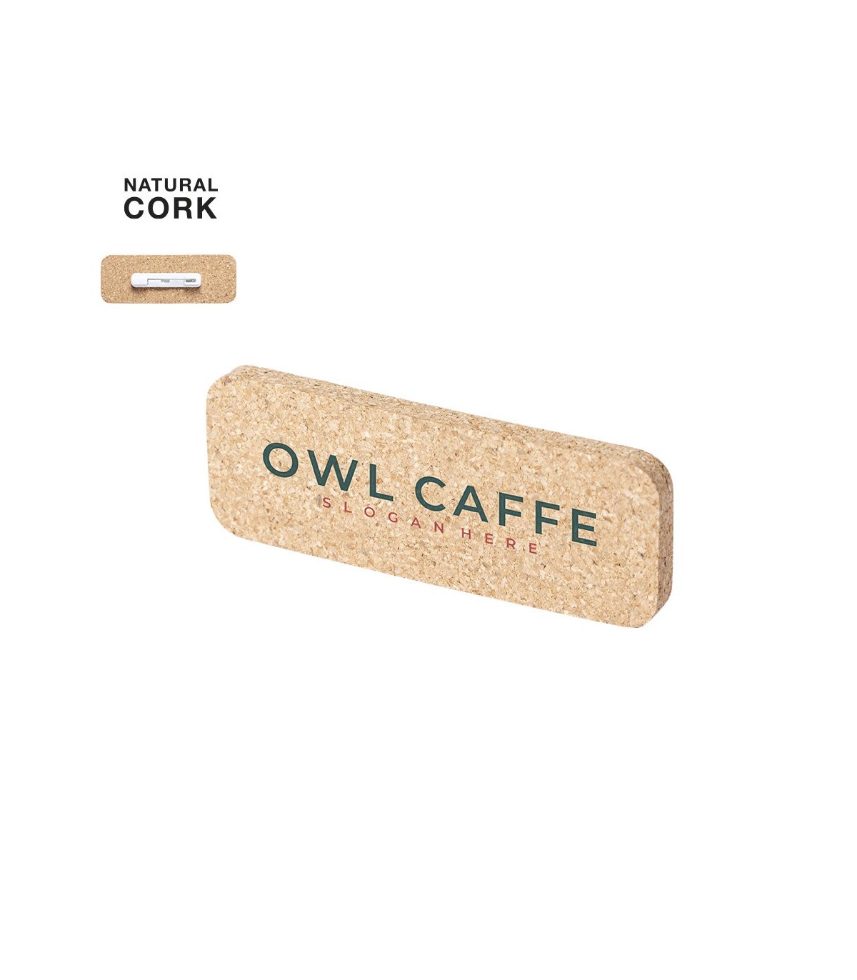 Identificador de línea ecológica fabricado en corcho natural, para así fomentar la utilización de materias primas naturales y reducir las emisiones contaminantes.