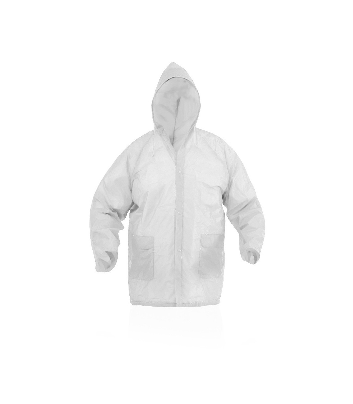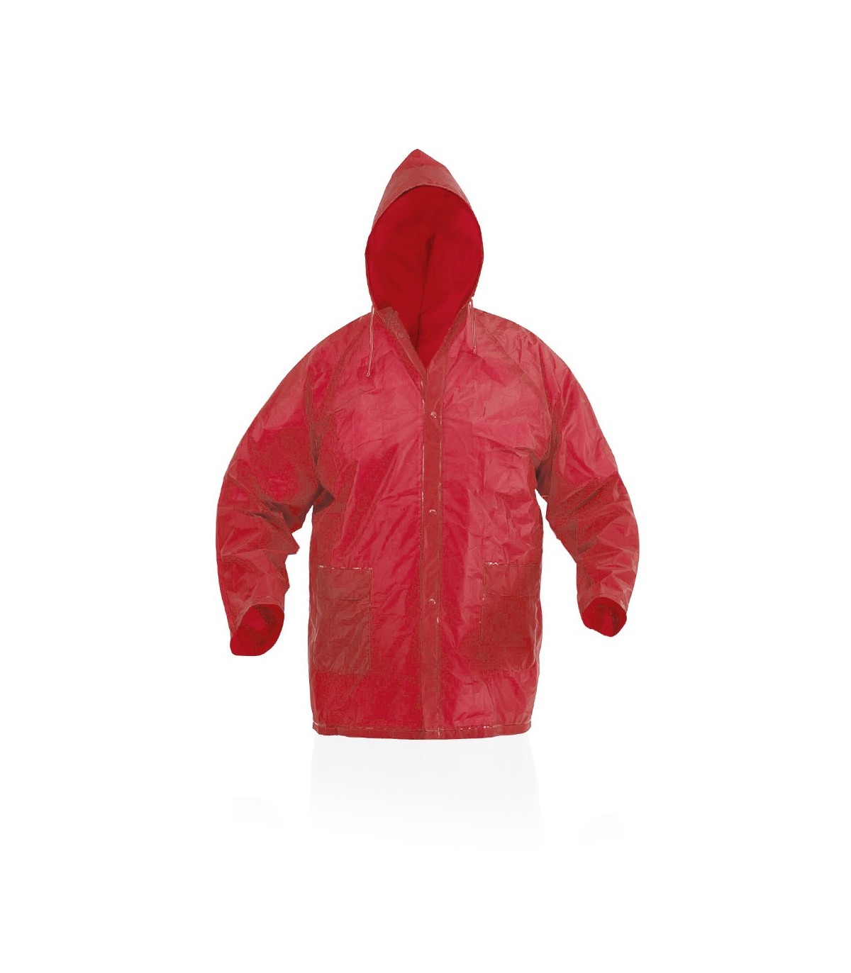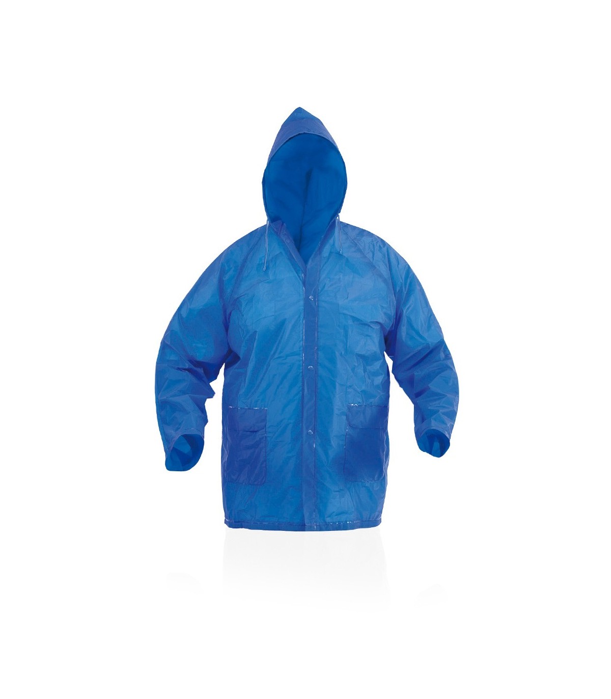 Impermeable en resistente EVA de acabado termosellado en diferentes colores llamativos para personalizar. Capucha dcon cintas de ajuste, cierre principal de corchete y con bolsillos laterales de solapa. Talla única para adulto.