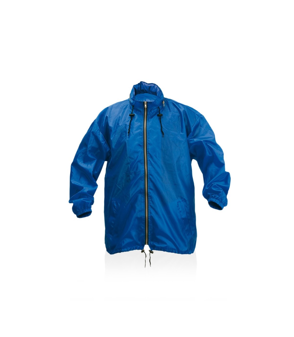 Impermeable en resistente poliéster 190T. Capucha con cordones de ajuste, integrada en compartimento con cremallera del cuello. Cierre principal de cremallera y cordón en cintura con accesorio de ajuste. Disponible en diferentes colores para personalizar con tu logo o marca de empresa y en tallas M, L, XL, XXL.