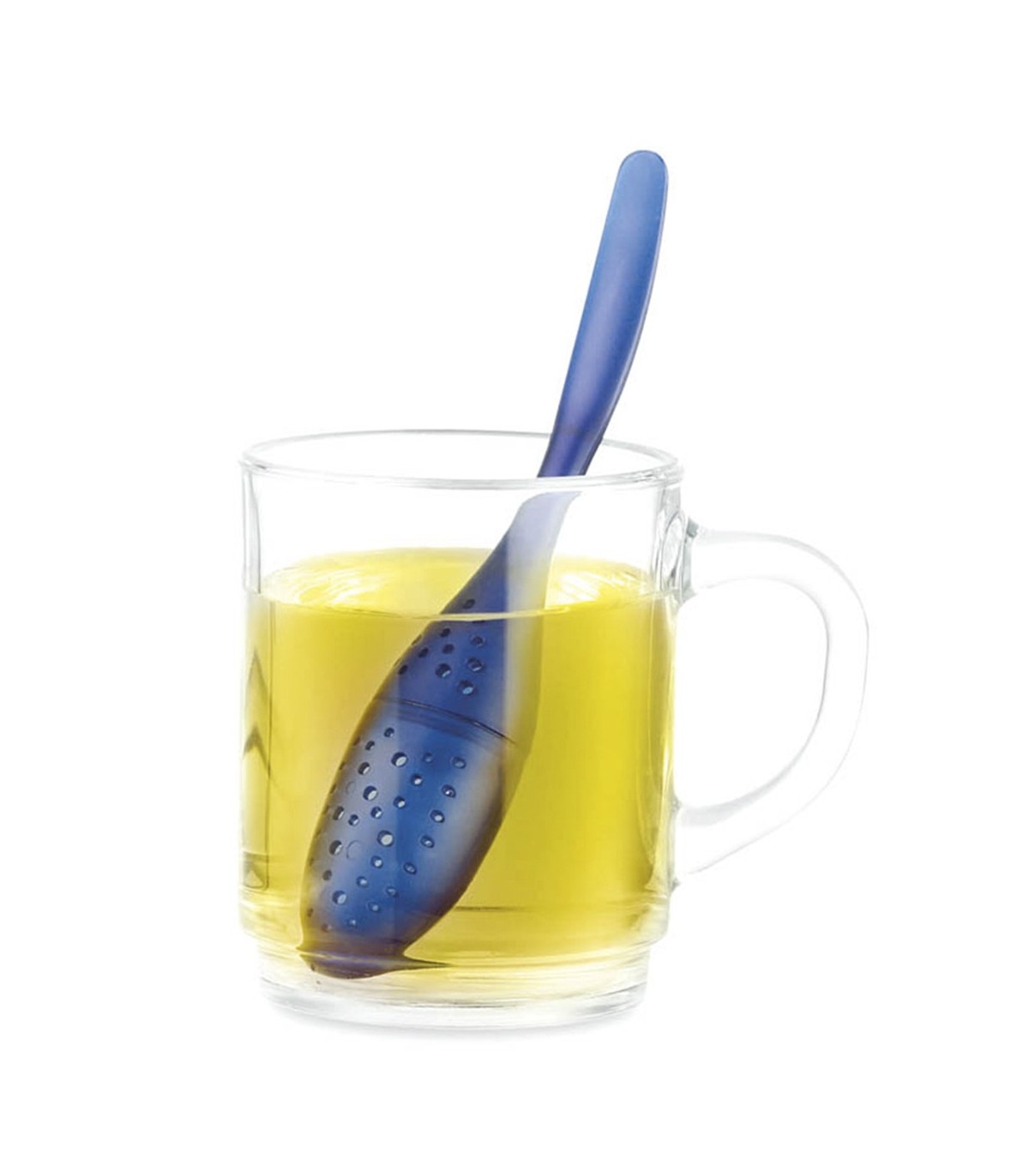Original Infusor con cuerpo de gota en colores translucidos y troquelados en círculos, para personalizar y marcar como artículos de empresa.
