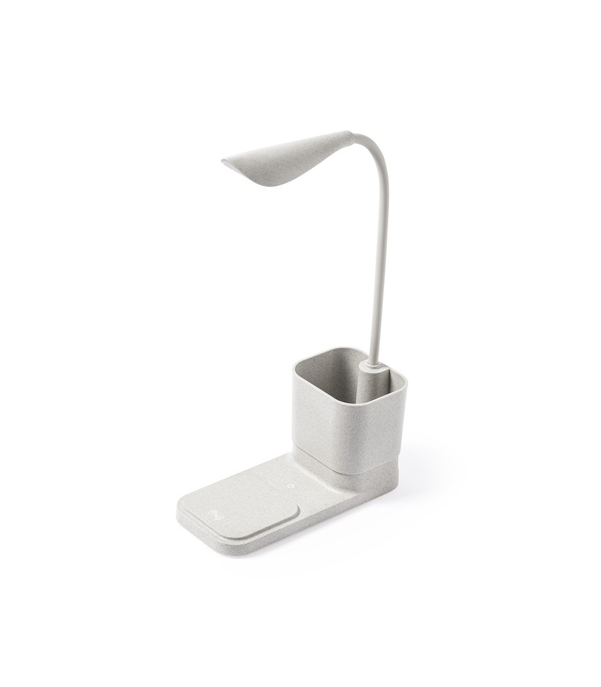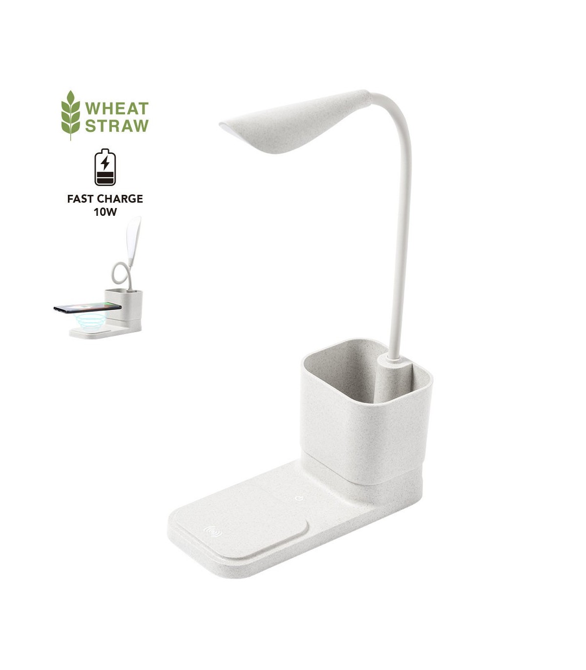 Lámpara multifunción ecológica en caña de trigo, con base antideslizante, cargador inalámbrico 10W y lámpara de 12 ledes, con intensidad de luz regulable.
