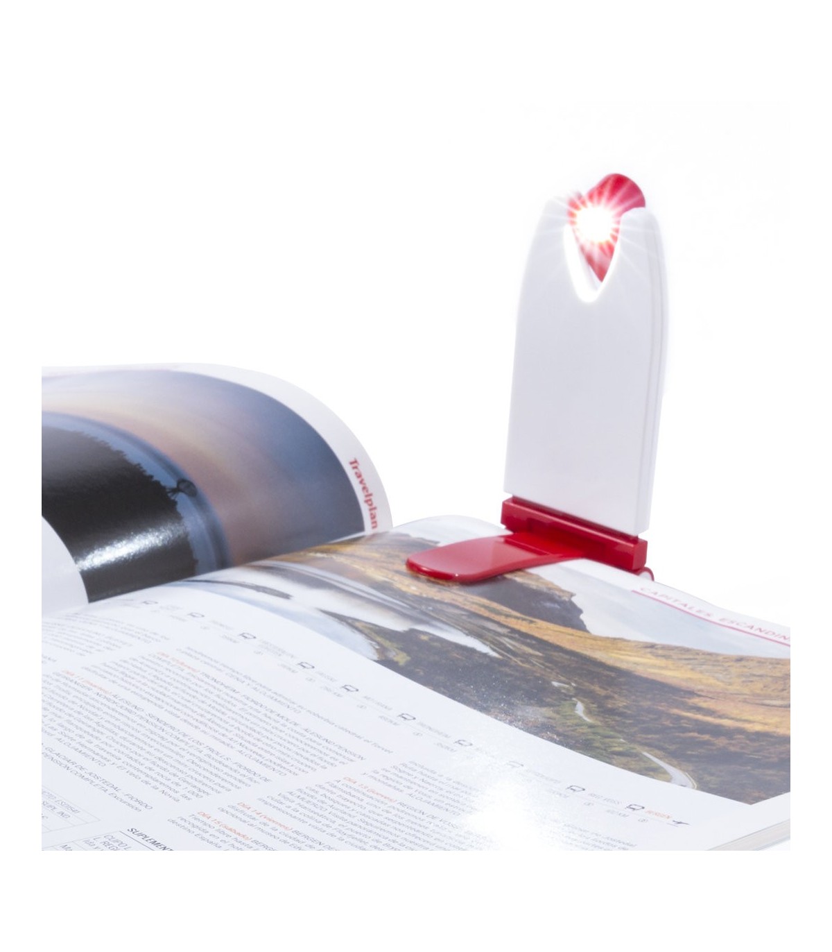 Lámpara led de lectura de diseño bicolor. De cuerpo plegable, con luz adaptable y cómoda pinza de sujeción. Presentada en bolsa de diseño con autocierre.