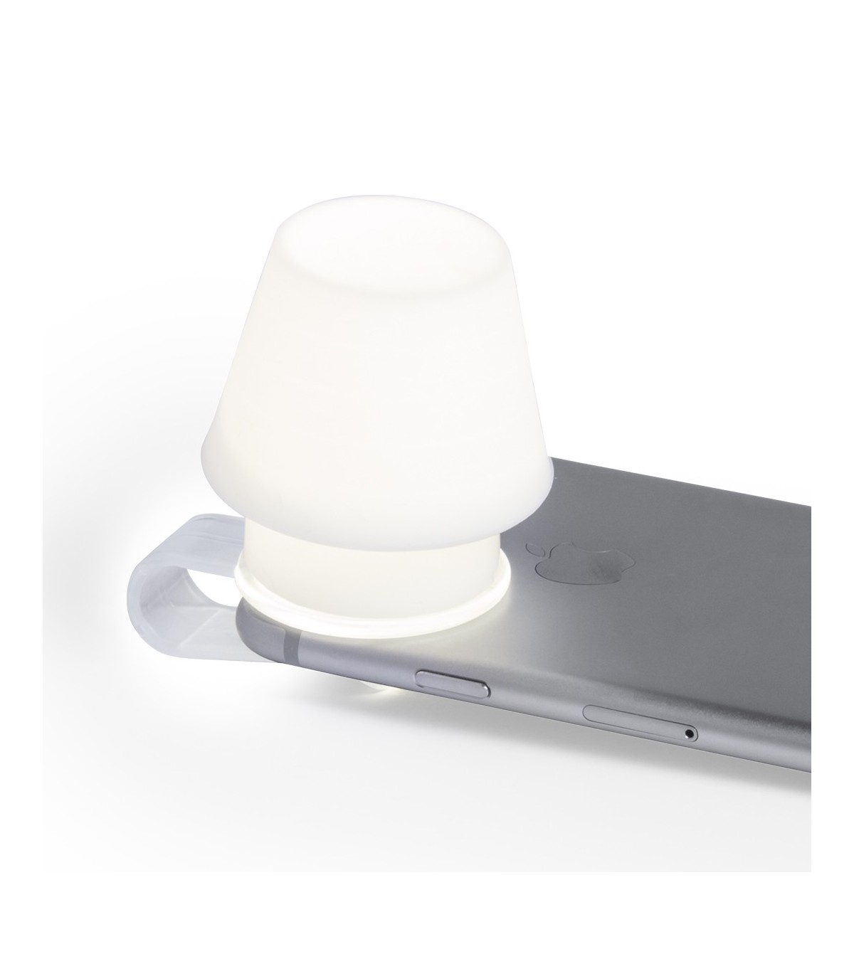 Original lámpara para smartphone. Con soporte para acople en la linterna del smartphone. Cuerpo de silicona de suave acabado. Presentada en atractiva caja de diseño.