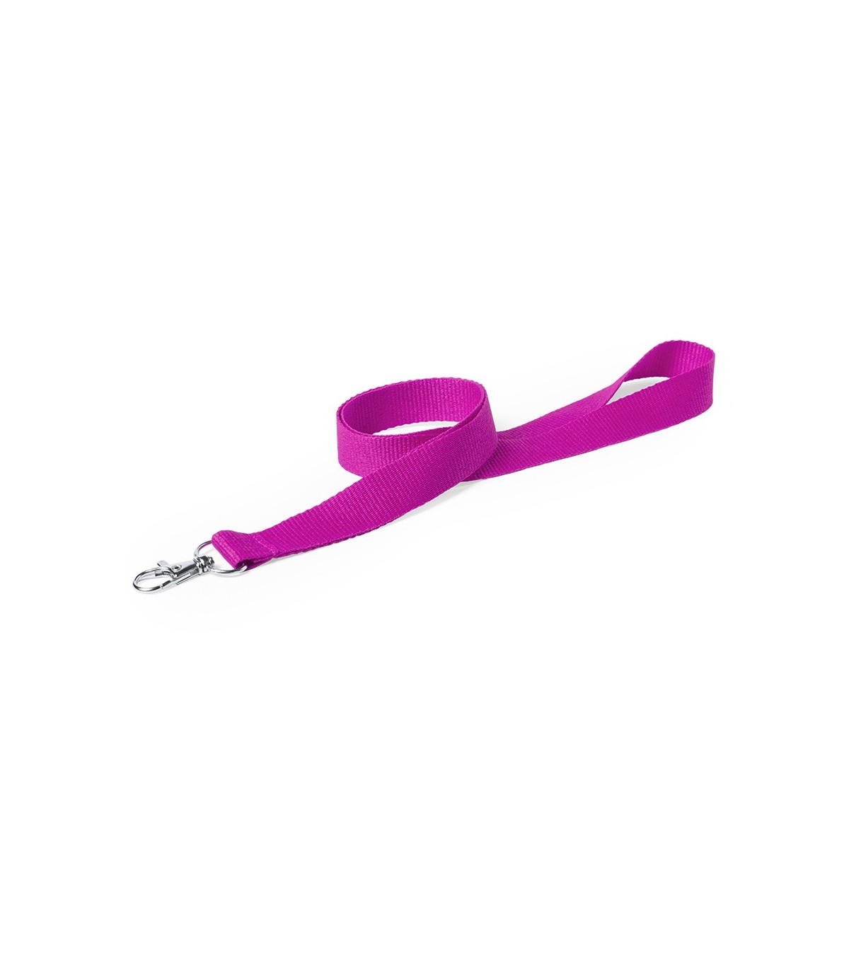 Original lanyard en resistente poliéster en vivos colores con cierre de mosquetón metálico.
