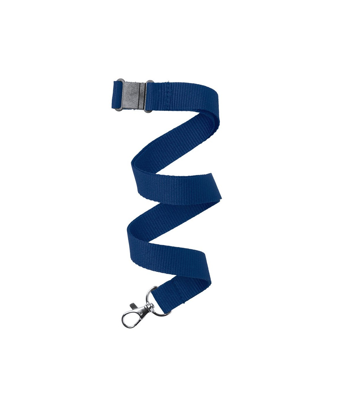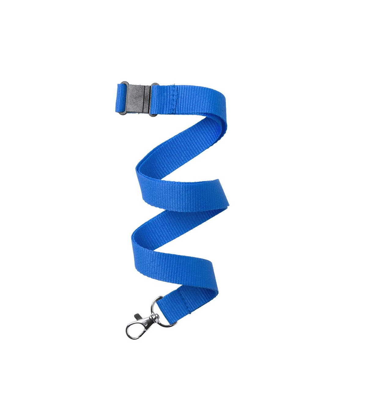 Lanyards en resistente poliéster, con accesorio de seguridad en el cuello y mosquetón metálico. Disponible en variada gama de colores vivos.