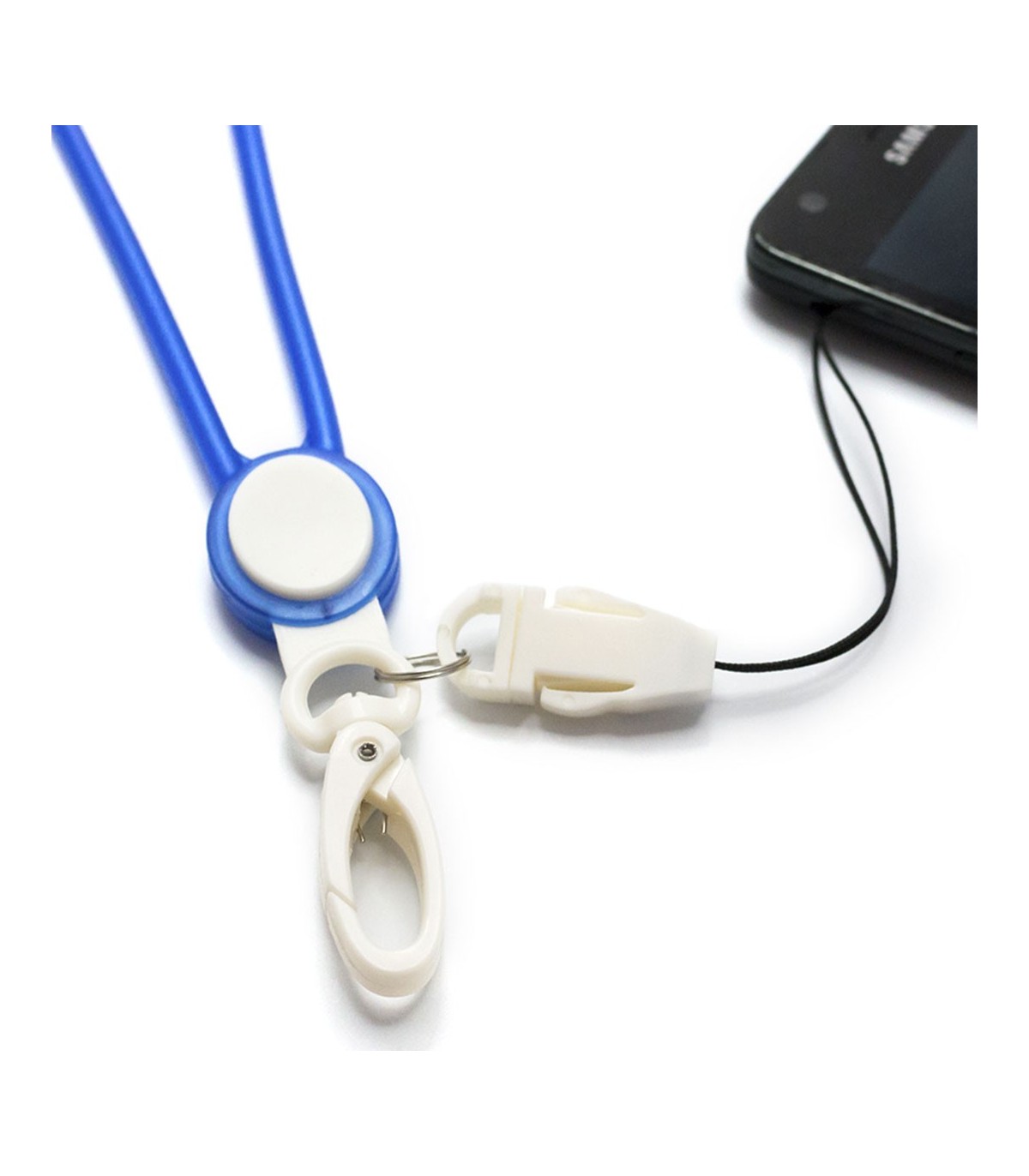 lanyards de silicona con mosquetón y accesorio para colgar el móvil, personalizados con logo de empresas para regalos publicitarios.