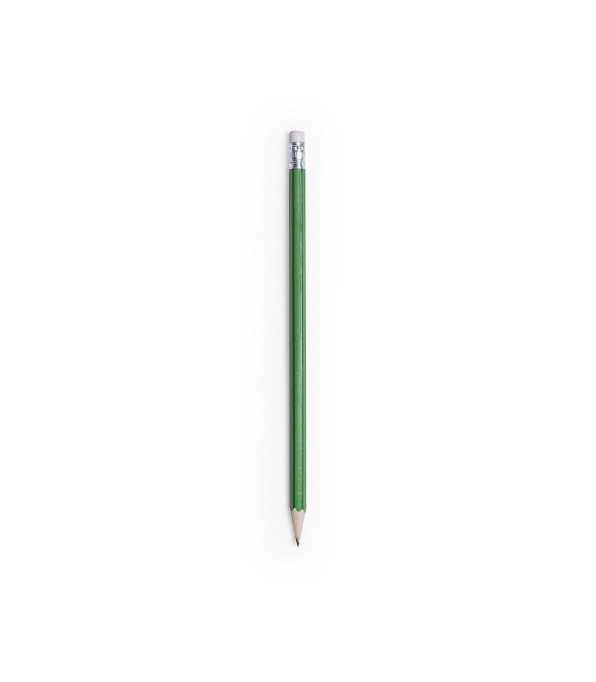 Lápices de madera de colores promocionales con finas líneas verticales de color negro en el cuerpo del lápiz, goma blanca. Marcaje de tu logo. Lapiz Graf.
