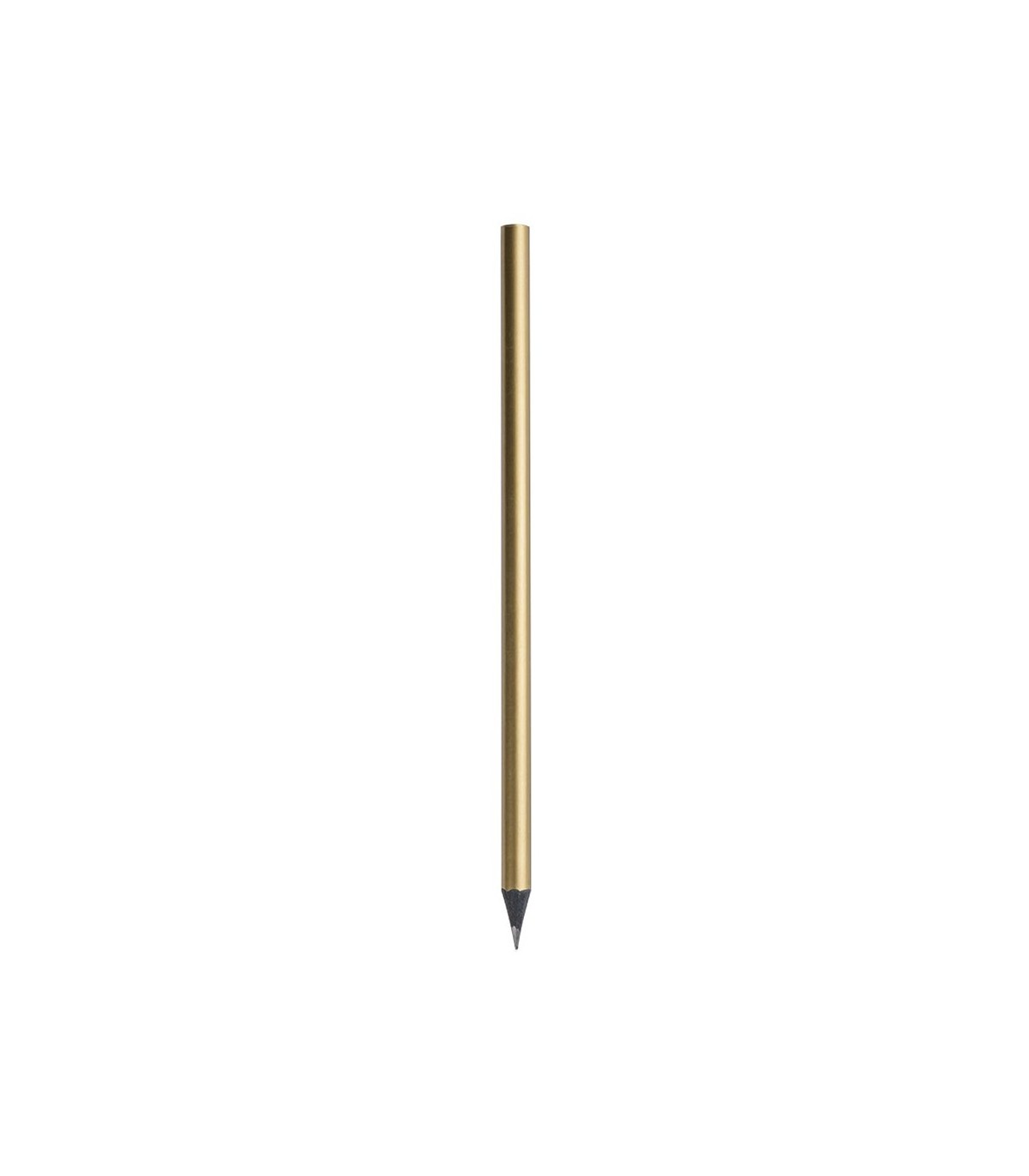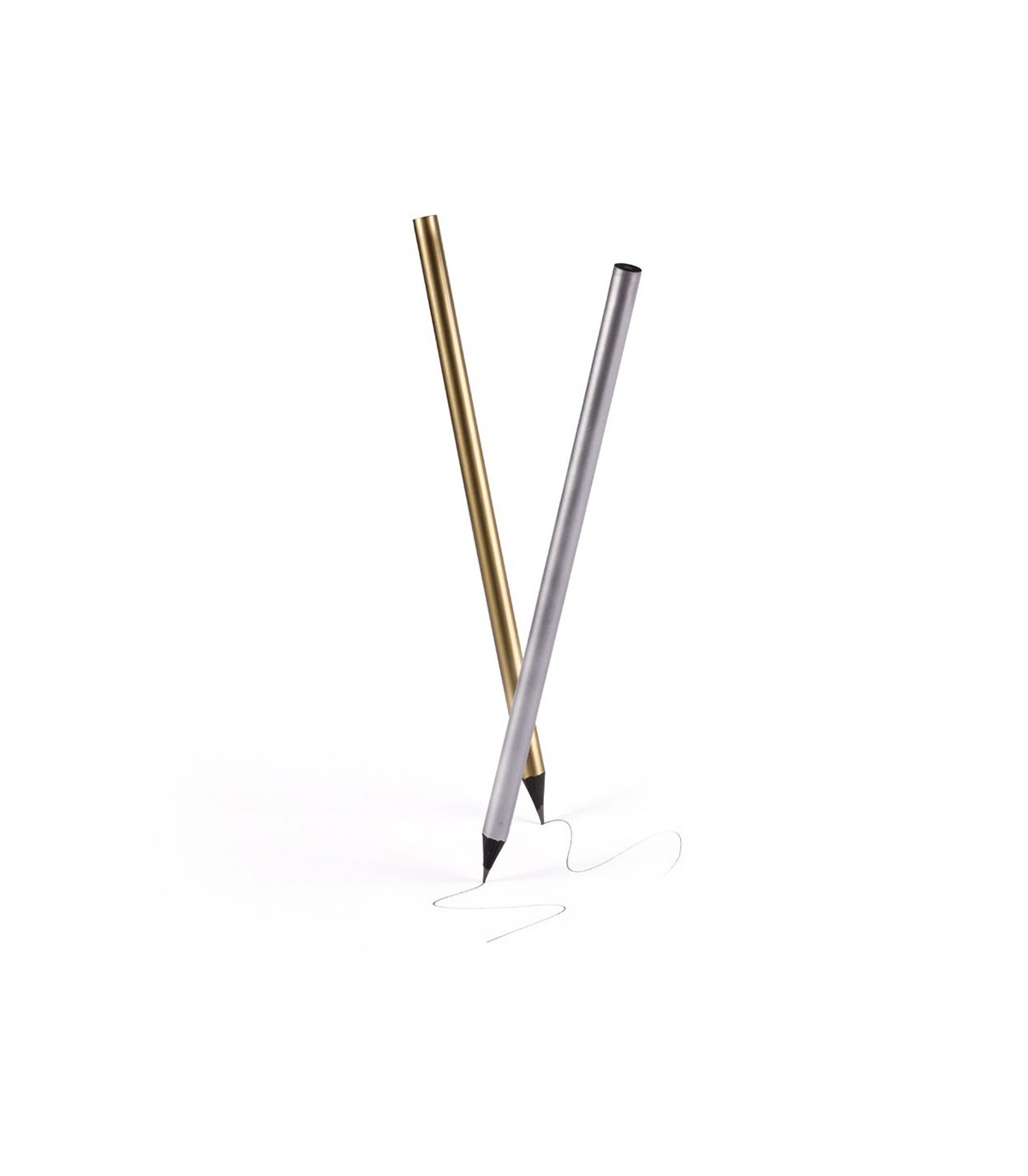 Elegante lápiz de madera negra con mina a juego y cuerpo en elegantes colores plateado y dorado. Punta afilada.