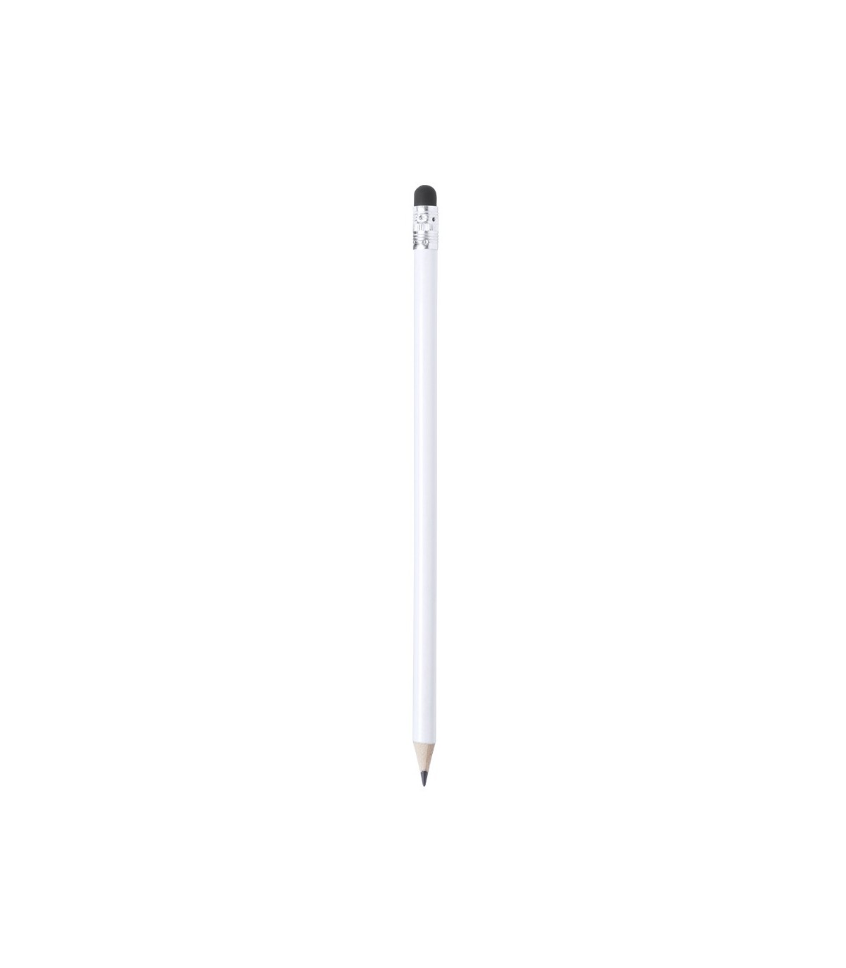 Lápiz de madera con cuerpo acabado en colores brillantes y puntero en parte superior. Punta afilada.