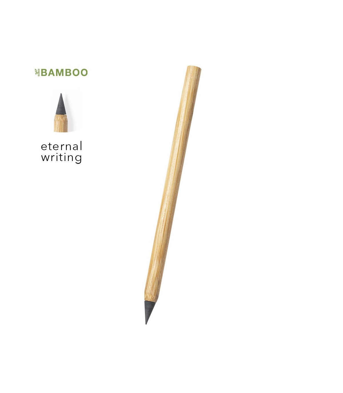 Lápiz eterno de fabricación ecológica. Hecho en bambú, con escritura infinita, para así usar siempre el mismo lápiz y no generar residuos.