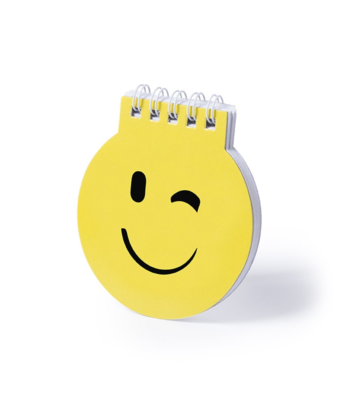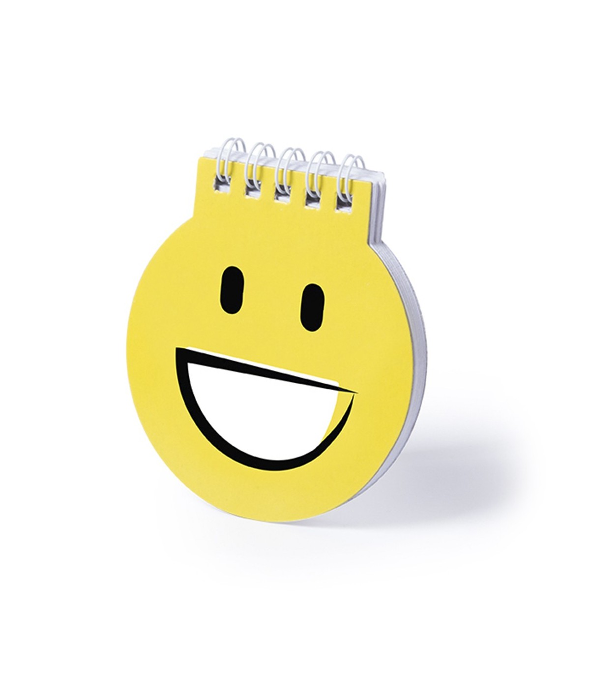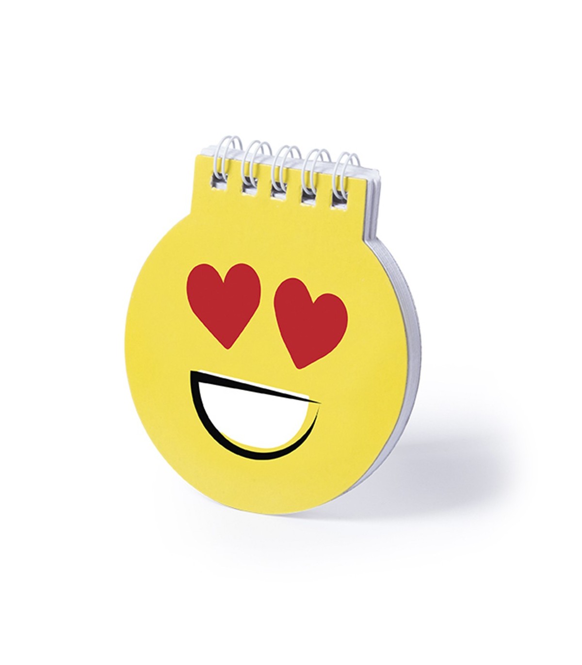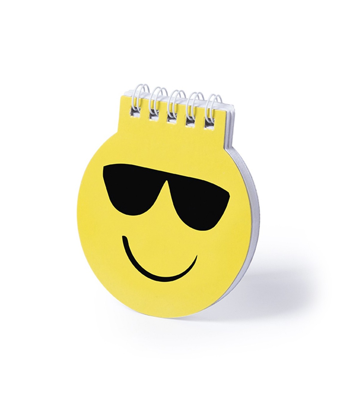 Libreta emoji en llamativo color amarillo con anillas blancas y tapas de cartón rígidas de suave acabado brillante y 40 hojas lisas.