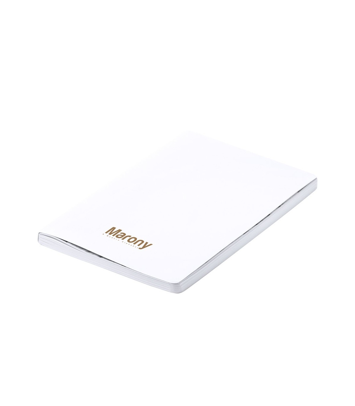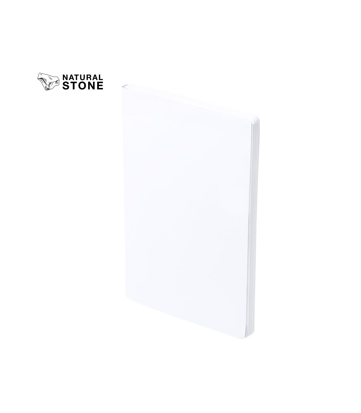 Libretas ecológicas fabricadas a base de extractos de piedra, en elegante acabado de color blanco. Tapas flexibles, con ilustración eco en el interior de la portada y 60 hojas de 150 g/m2.