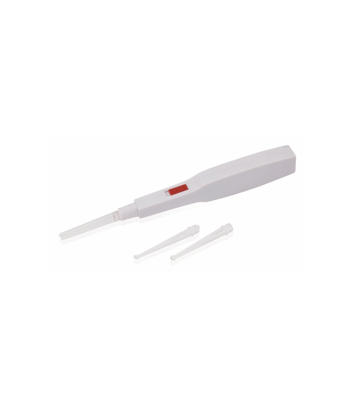 Limpiador para oídos con luz led. Incluye pinza y 2 palas de limpieza reutilizables. Pilas de botón incluidas.