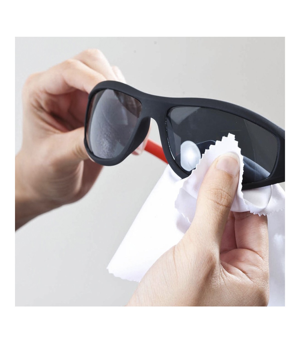 Paño limpiador en suave microfibra y diseñado para marcaje en sublimación. Laterales reforzados mediante corte de seguridad en zigzag.