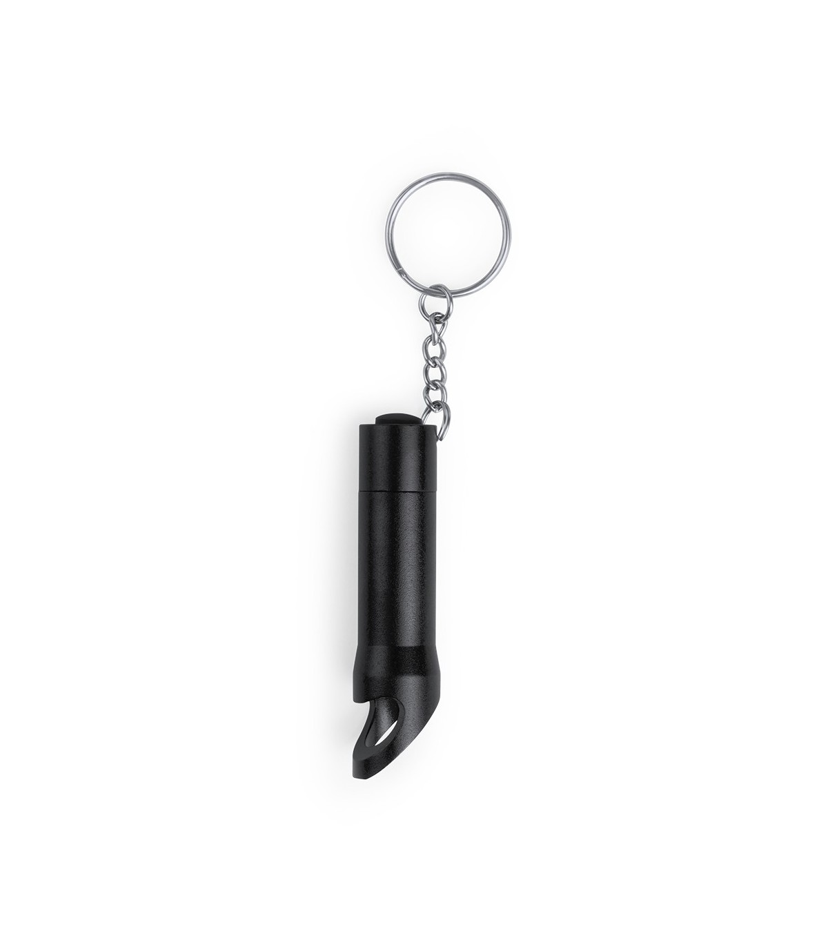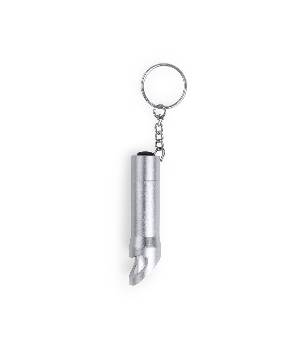 Linterna llavero de 3 ledes de alto poder de iluminación y abrebotellas integrado. Con resistente cuerpo en aluminio de diferentes colores muy llamativos que puedes elegir para personalizar brillantes y pulsador protegido con recubrimiento de resistente goma. Pilas de botón incluidas con film protector.