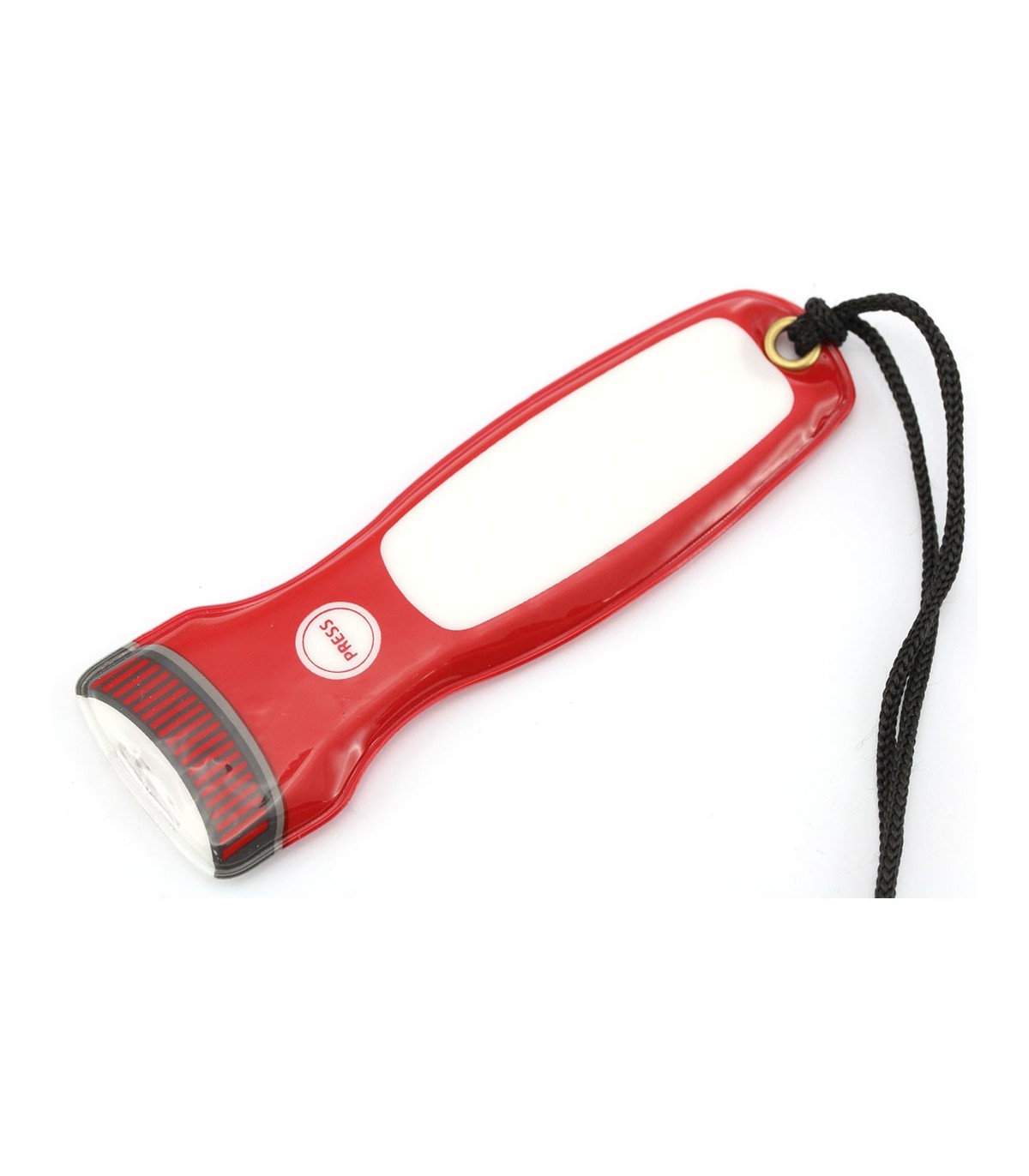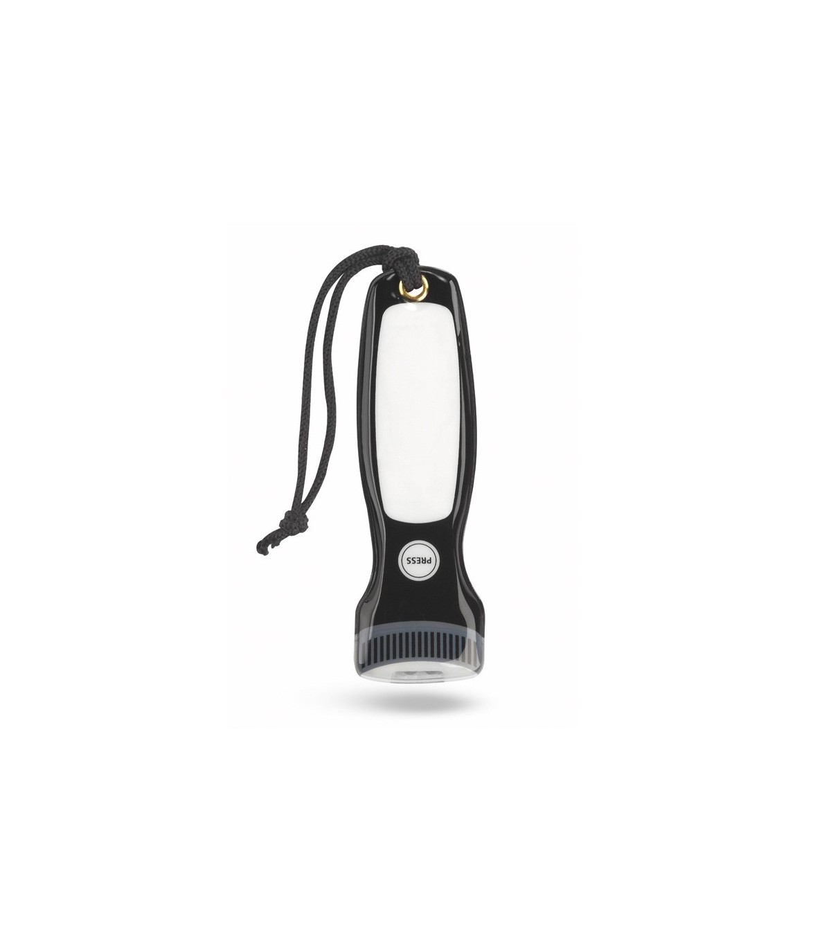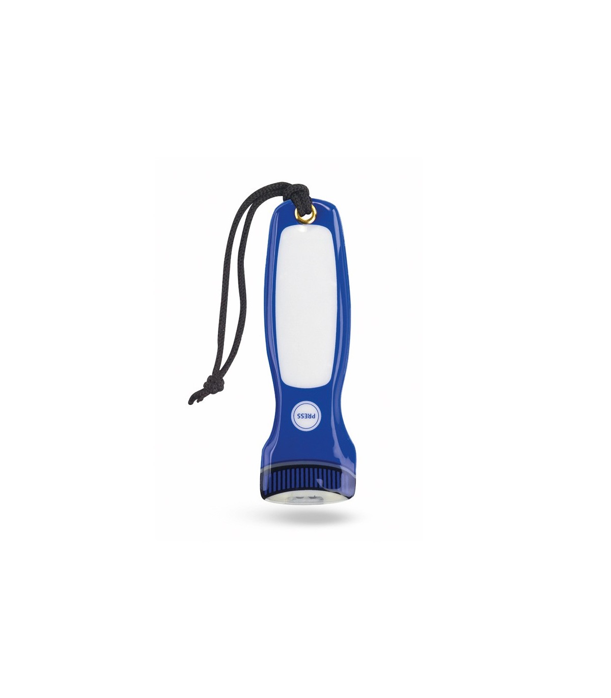 Linterna de 2 ledes de diseño extraplano. Con cuerpo rectangular acabado en PVC de diferentes colores muy llamativos que puedes elegir para personalizar. Con cinta de transporte y pilas de botón incluidas.