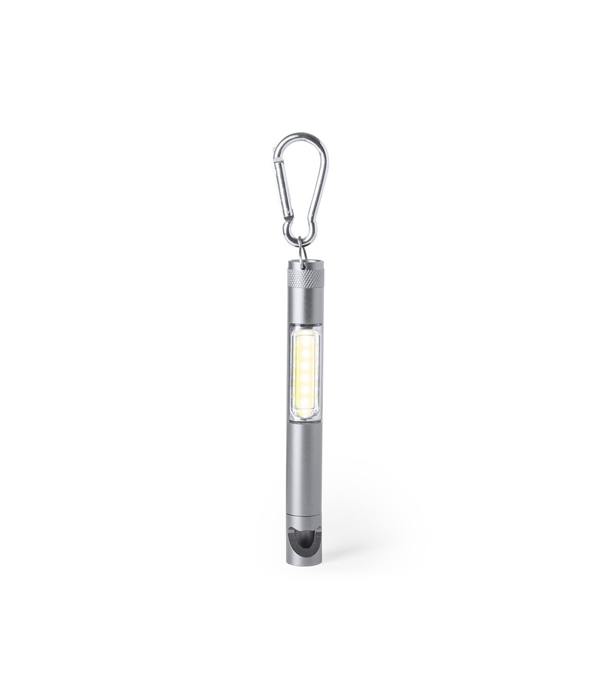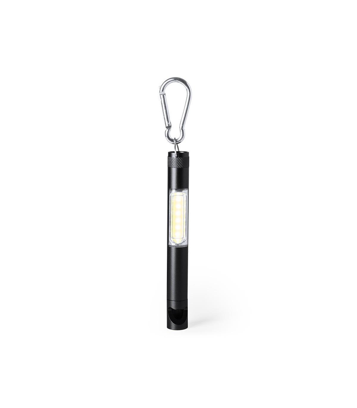 Linterna magnética de aluminio en variada gama de colores. Con 6 luces COB y abridor integrado. Con mosquetón de transporte metálico. Pilas de botón incluidas y presentada en caja individual.