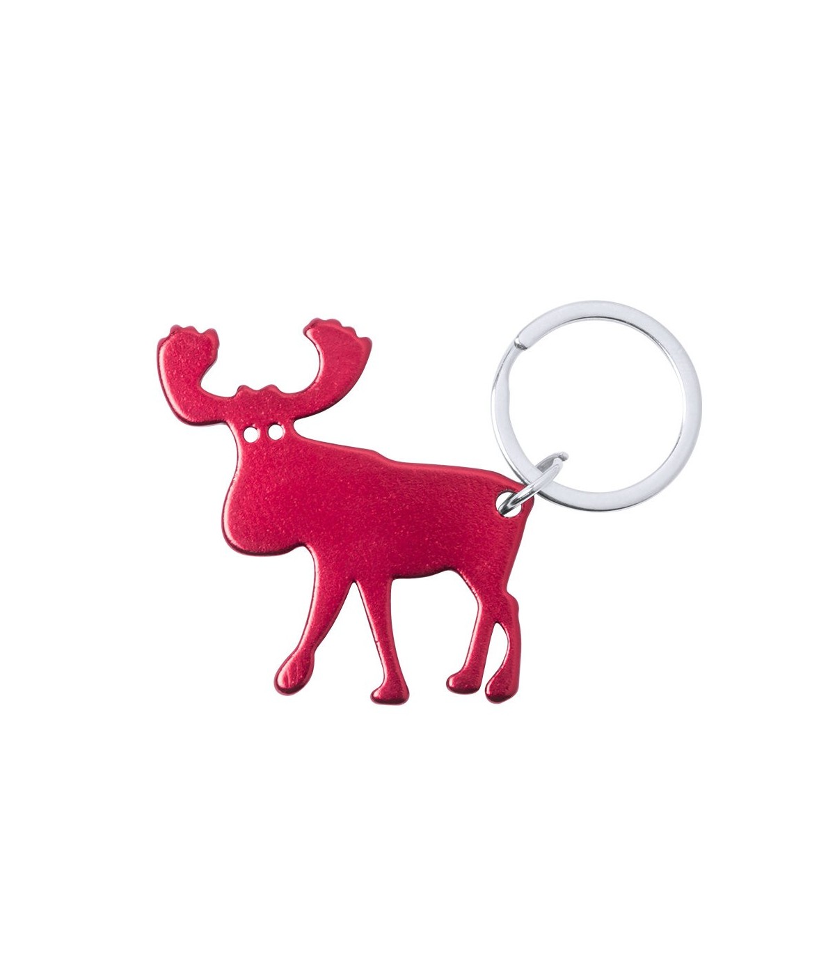 Original llavero abridor en aluminio. Con diseño navideño de reno en vivos colores brillantes.