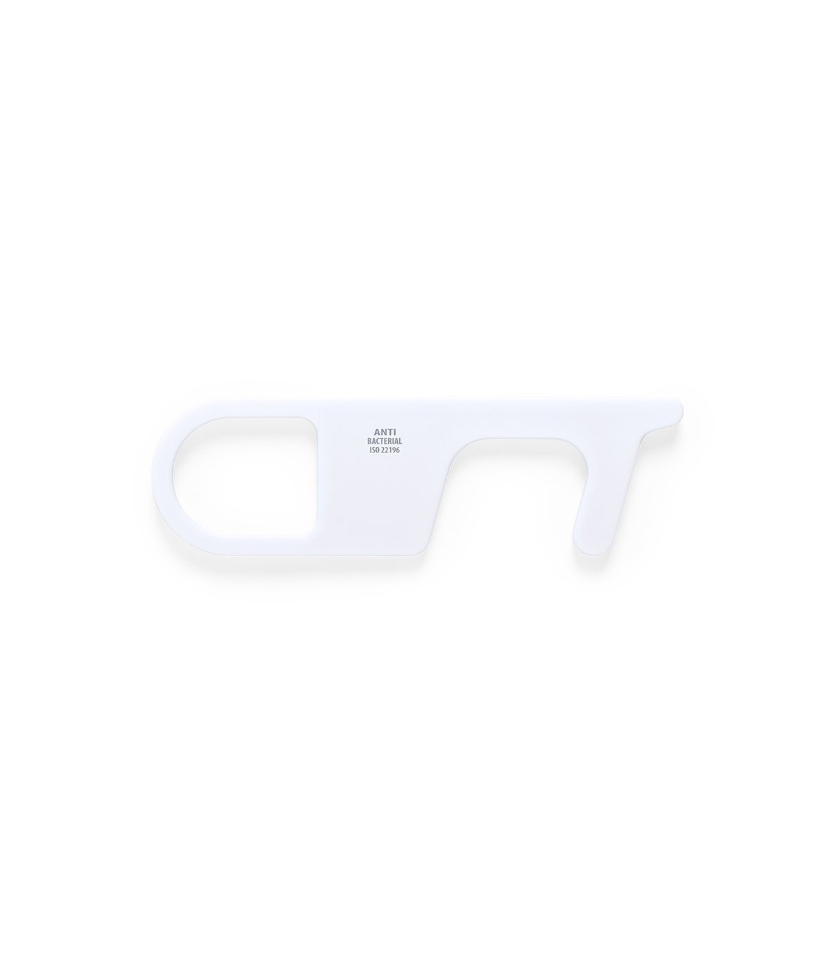 Llavero higiénico antibacteriano y anti-contacto, fabricado en resistente ABS de acabado sólido. Especialmente diseñado para evitar tocar con las manos superficies de uso común (manivelas de puertas, interruptores, grifos de uso público, cajeros automáticos...). Con cómodo troquel para el dedo y presentado en bolsita individual. Recomendado para marcaje en tampografía. Los productos con tratamientos antibacterianos son capaces de reducir drásticamente las cargas bacterianas presentes en las superficies de los materiales, gracias a la incorporación de agentes microbianos permanentes estáticos, con alta efectividad para inhibir y prevenir la contaminación bacteriana. Artículo de acuerdo al estándar ISO 22196, que determina la actividad antibacteriana en materiales plásticos y superficies no porosas, lo que permite conocer la efectividad de inhibición microbiana que tienen los aditivos sobre los objetos tratados mediante una evaluación cuantitativa.