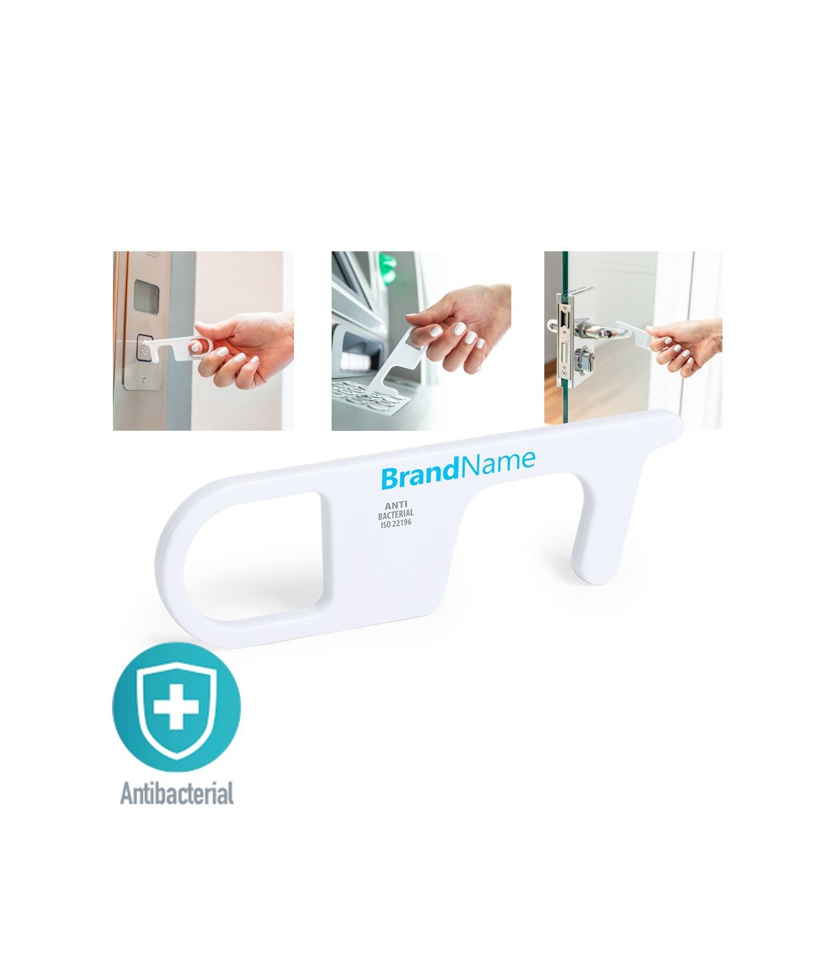 Llavero higiénico antibacteriano y anti-contacto, ideal para regalos promocionales con tu logo, muy util para el uso diario en puertas, interruptores, grifos de uso público.