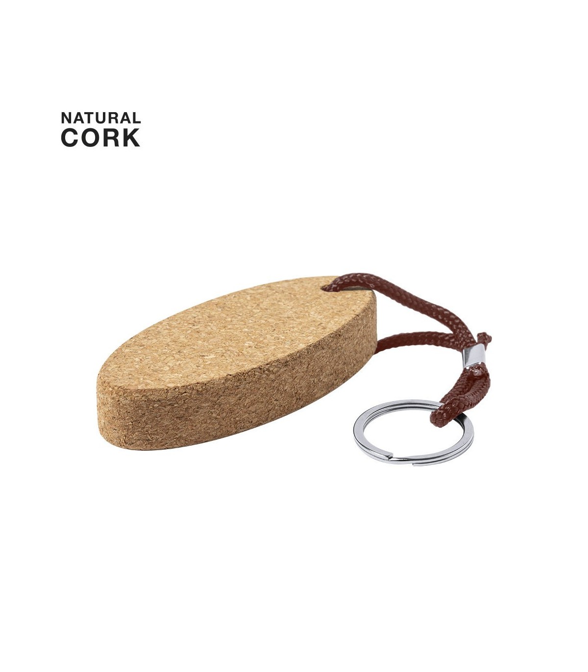 Llavero flotante ecológicos promocionales, fabricado en corcho natural. Con cordón de poliéster y anilla metálica.