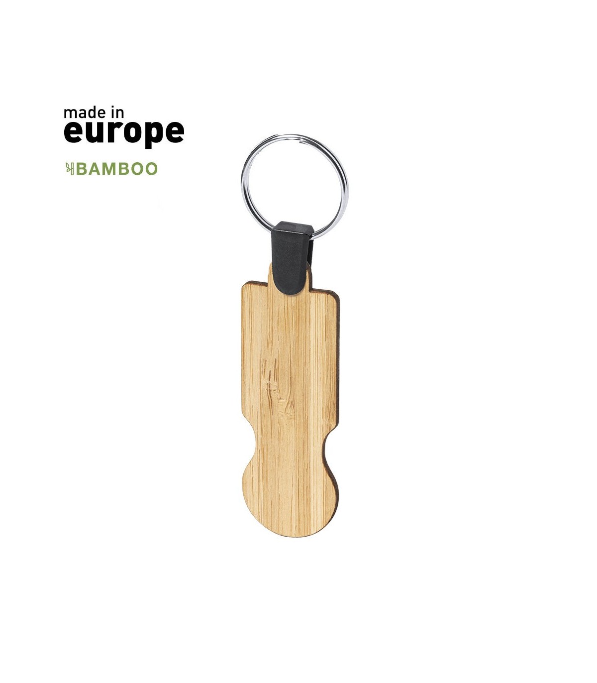 Llavero moneda de fabricación ecológica y fabricación europea, hecho en bambú procedente de cortes naturales.