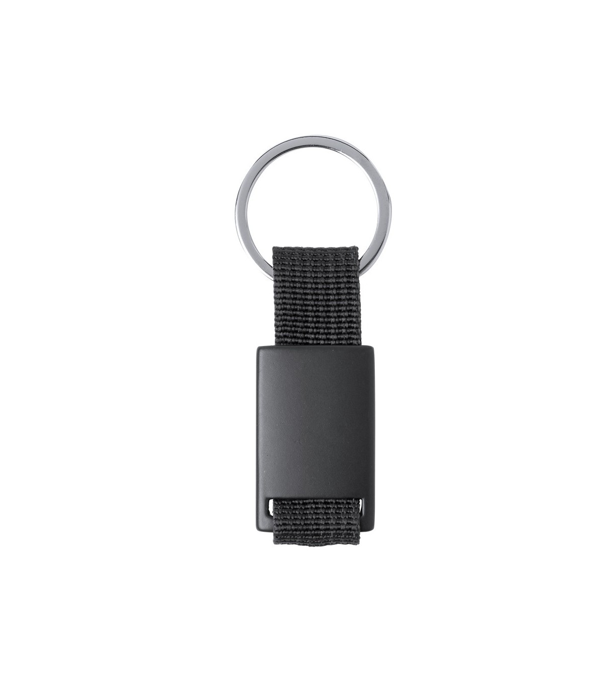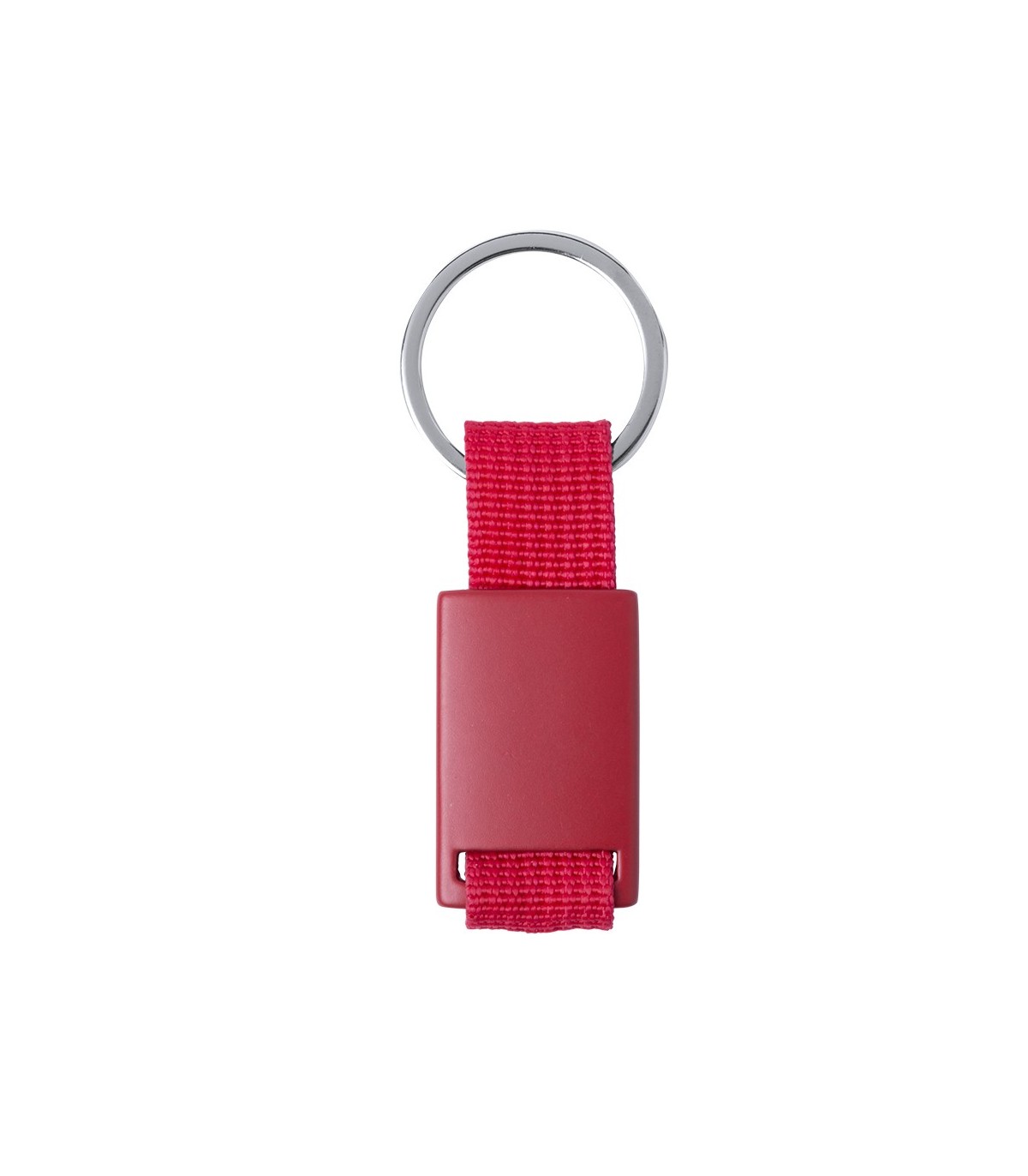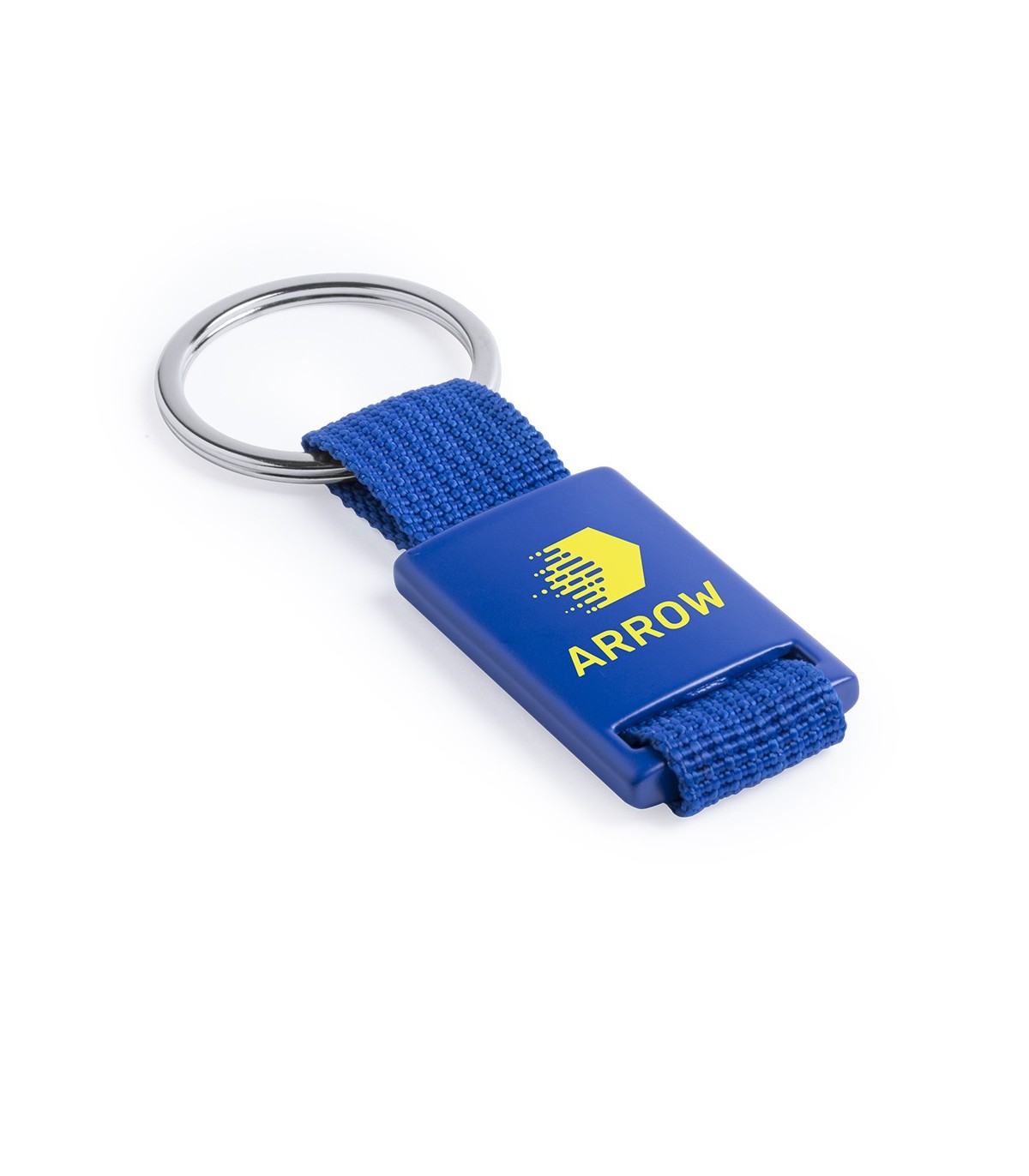 Llavero todoterreno, con cuerpo acabado en aluminio de vivos colores y resistente cinta de poliéster a juego. Presentado en bolsita individual .