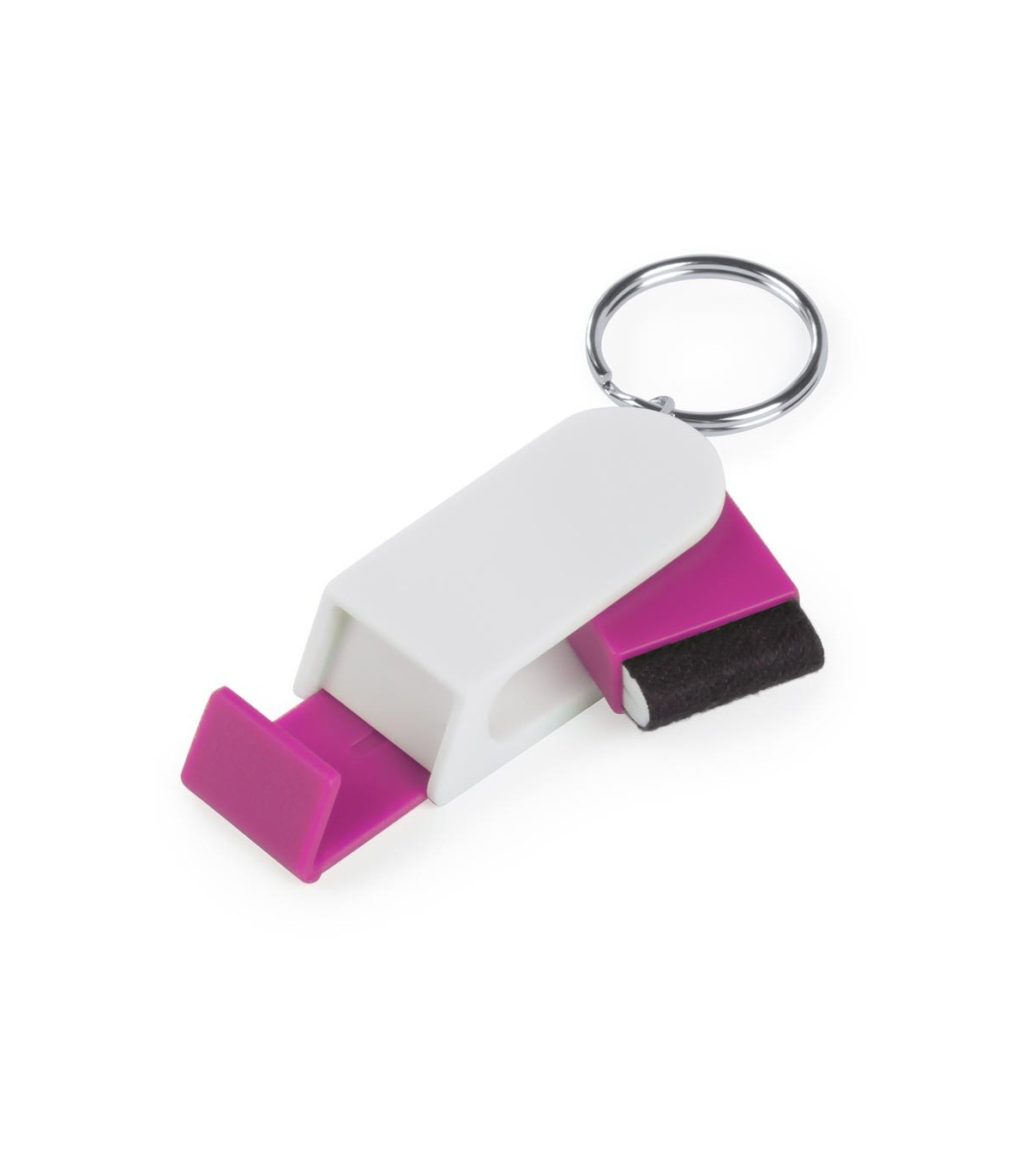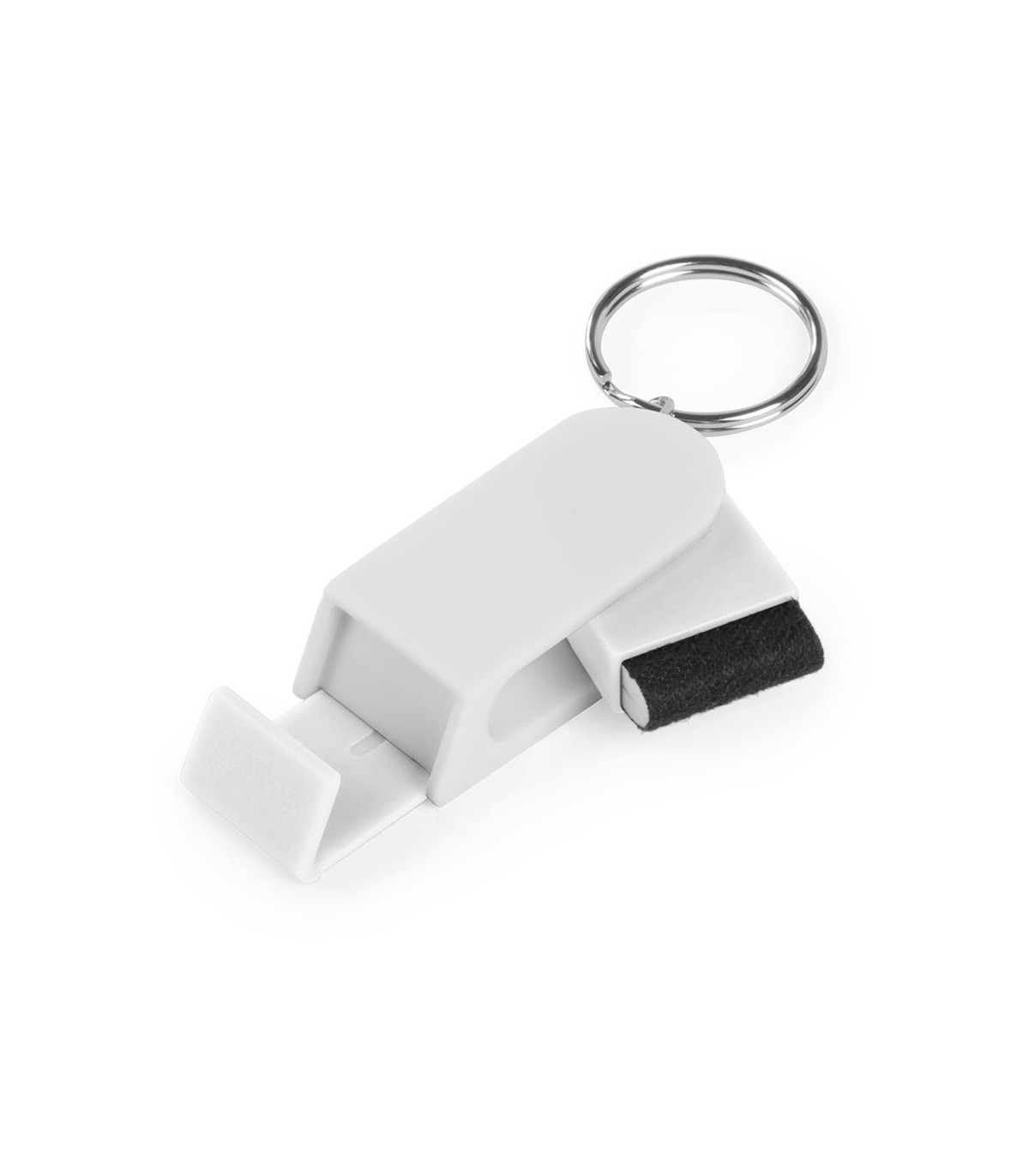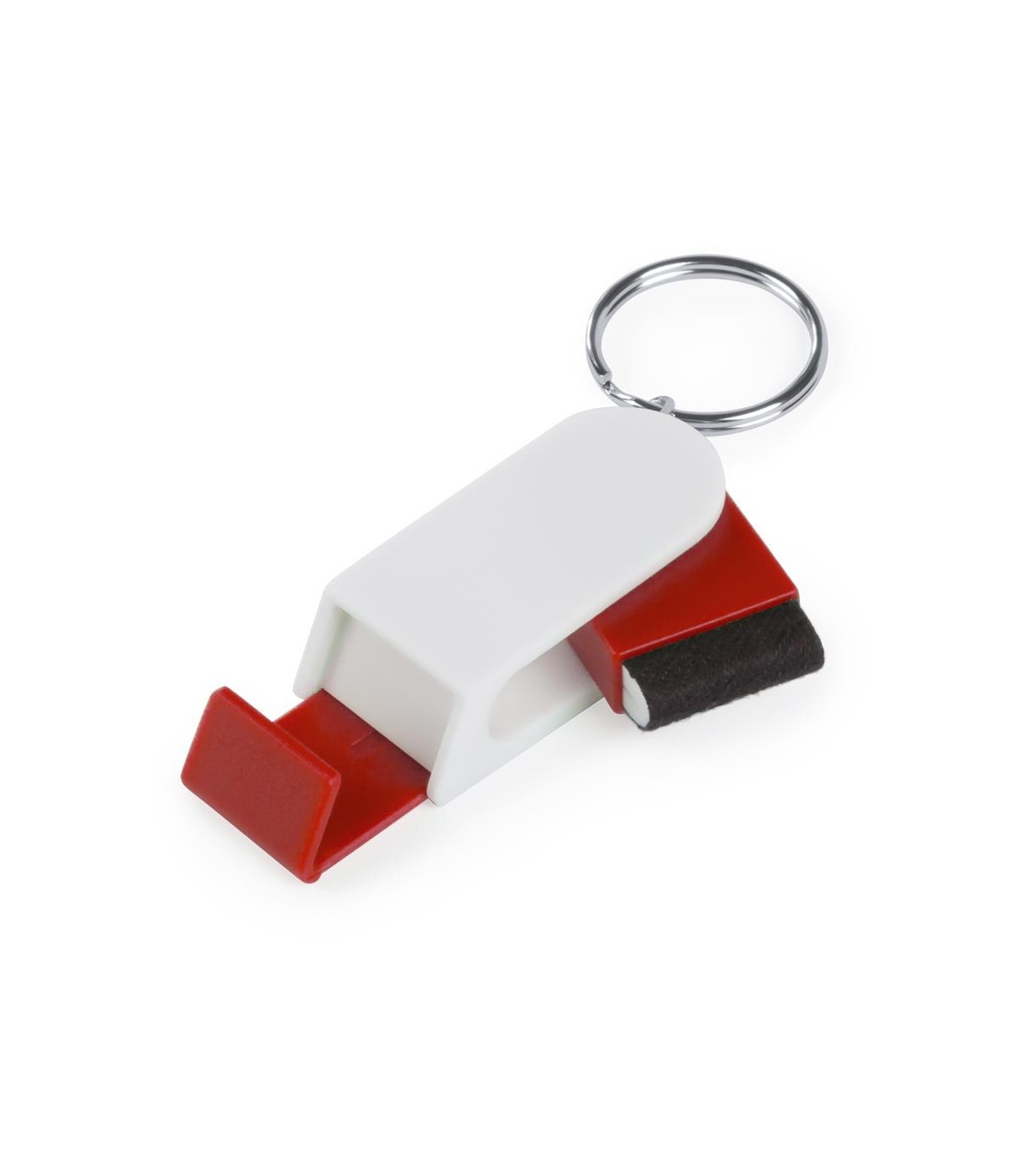 Llavero económico con soporte para Smartphone con limpia pantallas incluido ideal para regalos de empresa originales.