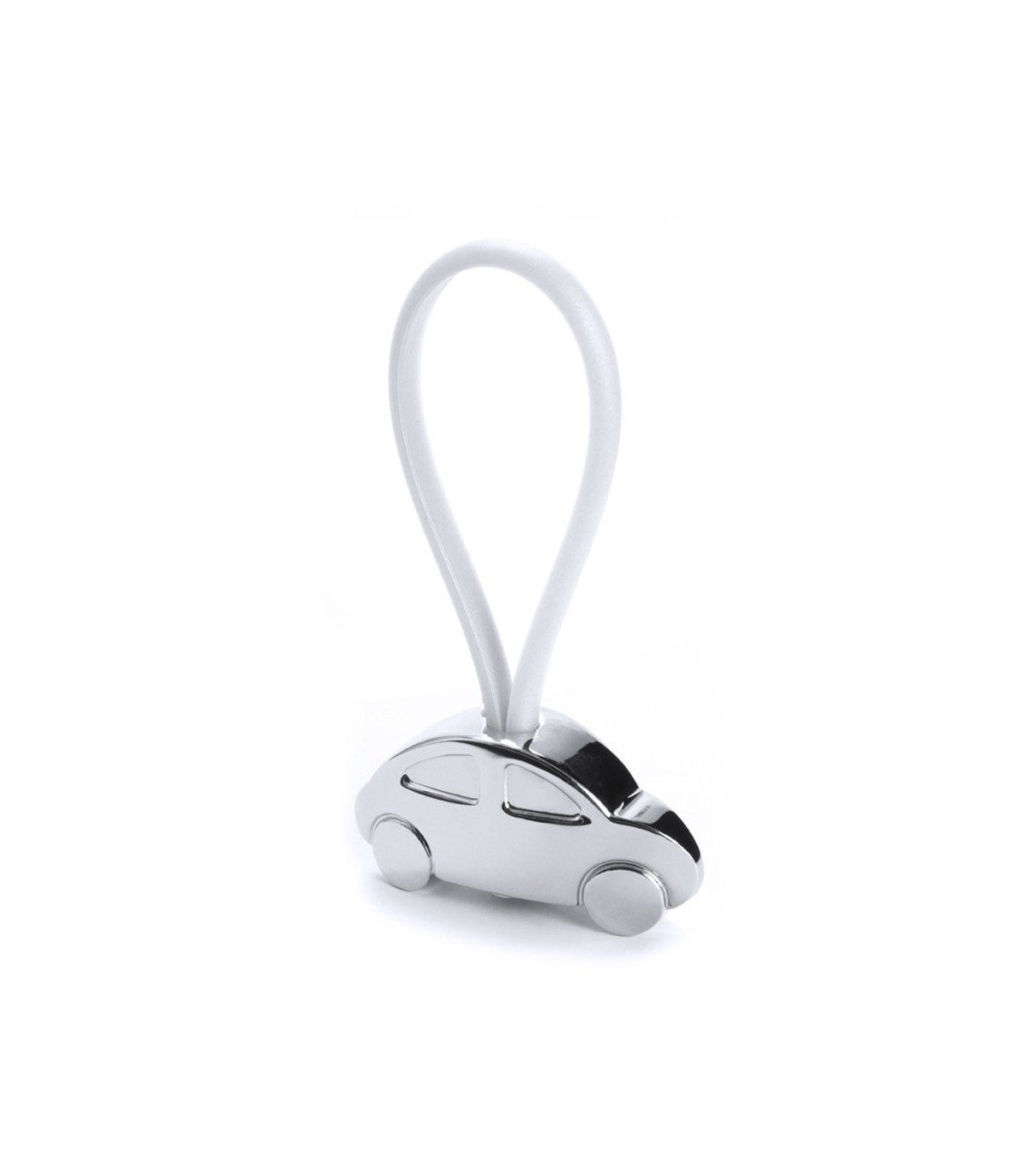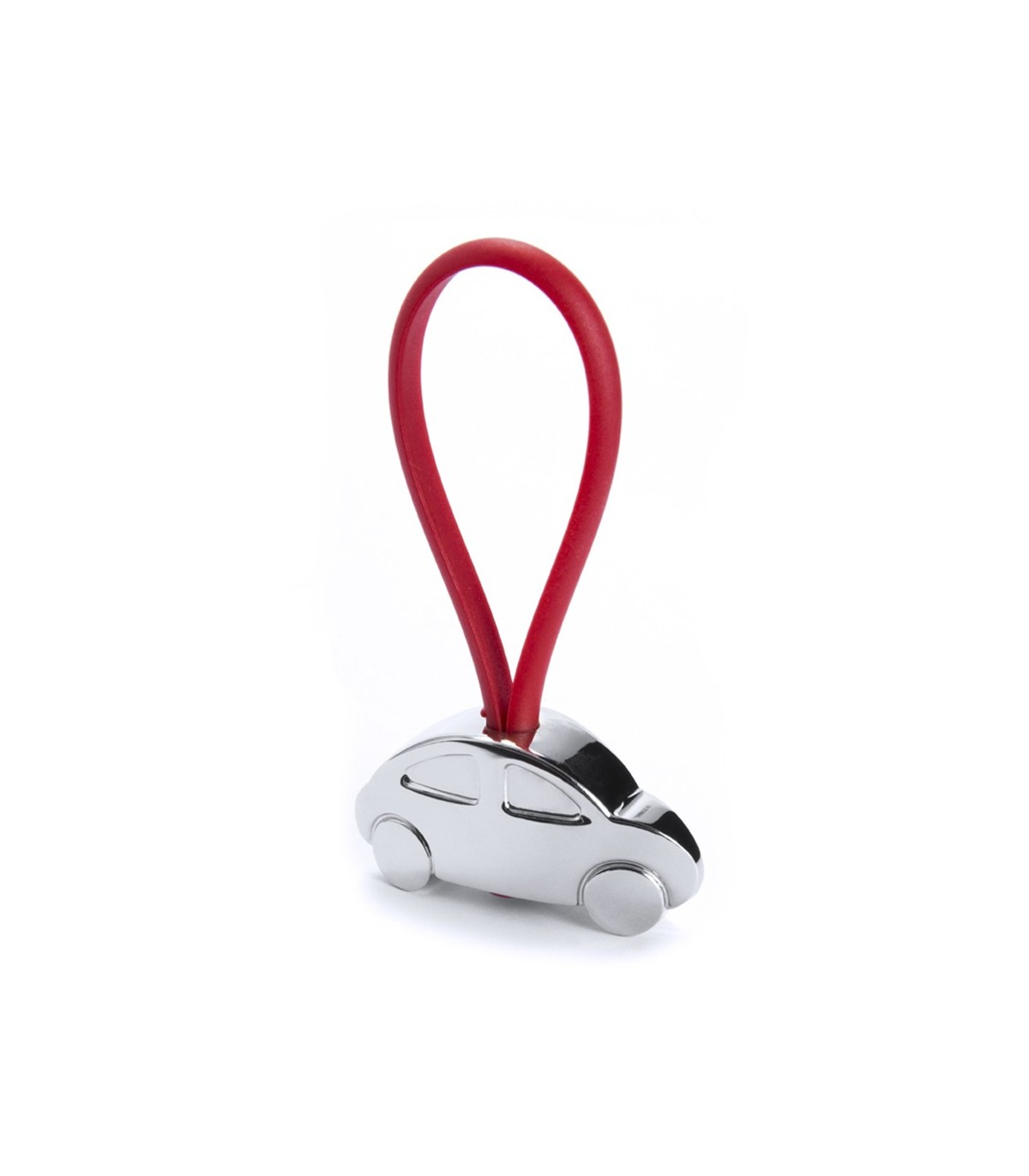 Llavero metálico en divertido diseño 3D de coche. Con cinta de goma en diferentes colores muy llamativos que puedes elegir para personalizar.