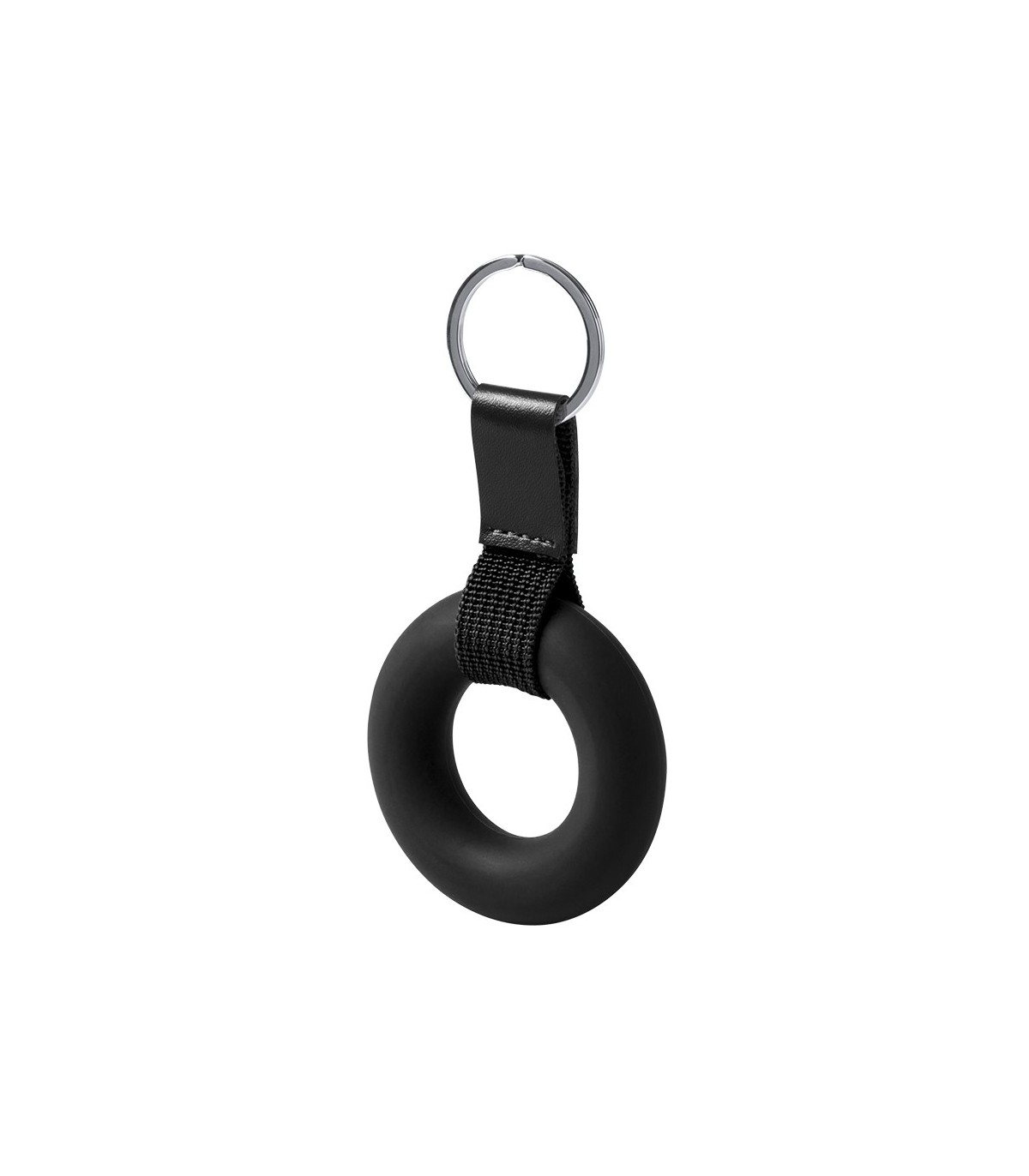 Llaveros antiestres fabricado en termoplástico y Con cinta de poliéster y refuerzo de polipiel personalizados como artículos para publicidad de empresas.