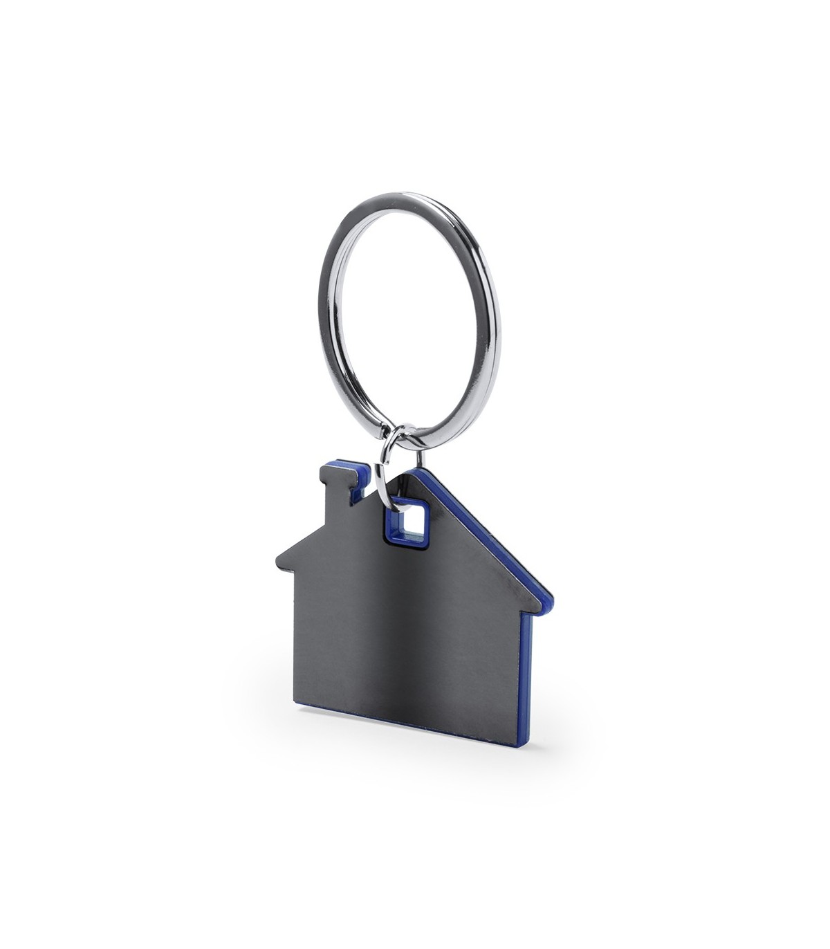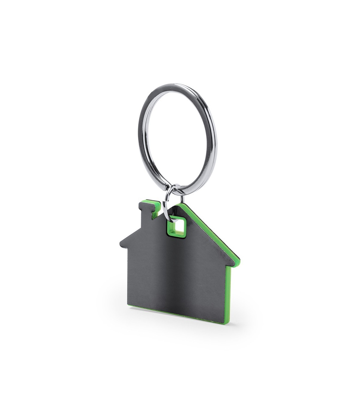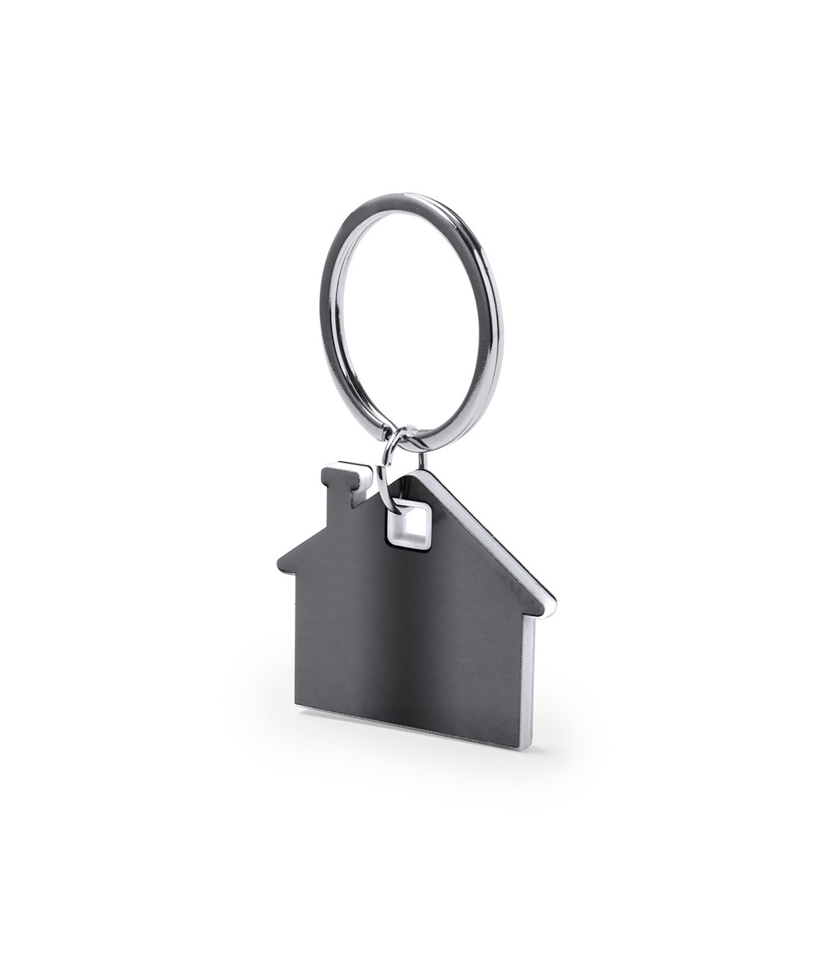 Llavero casita con exterior en acero inox de tono gris espacial natural e interior en variada gama de colores, para marcar como artículos publicitarios.