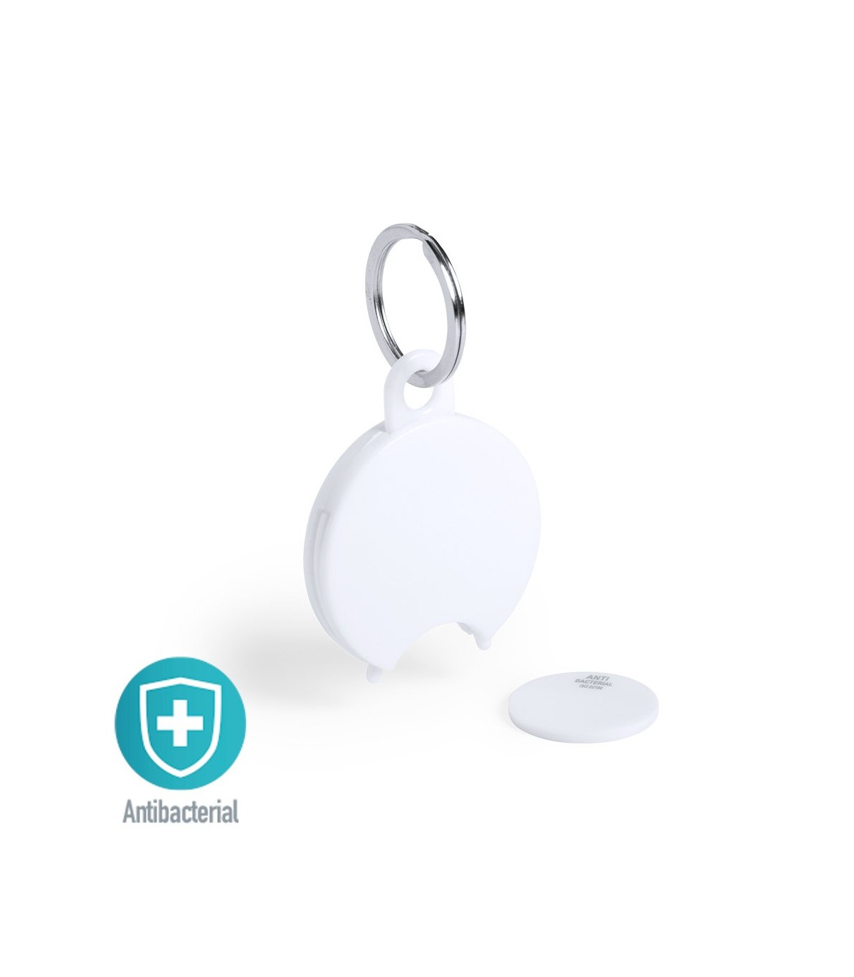 Llaveros moneda antibacteriano promocionales fabricado en material PS de acabado sólido con moneda extraíble. Presentado en bolsa individual..