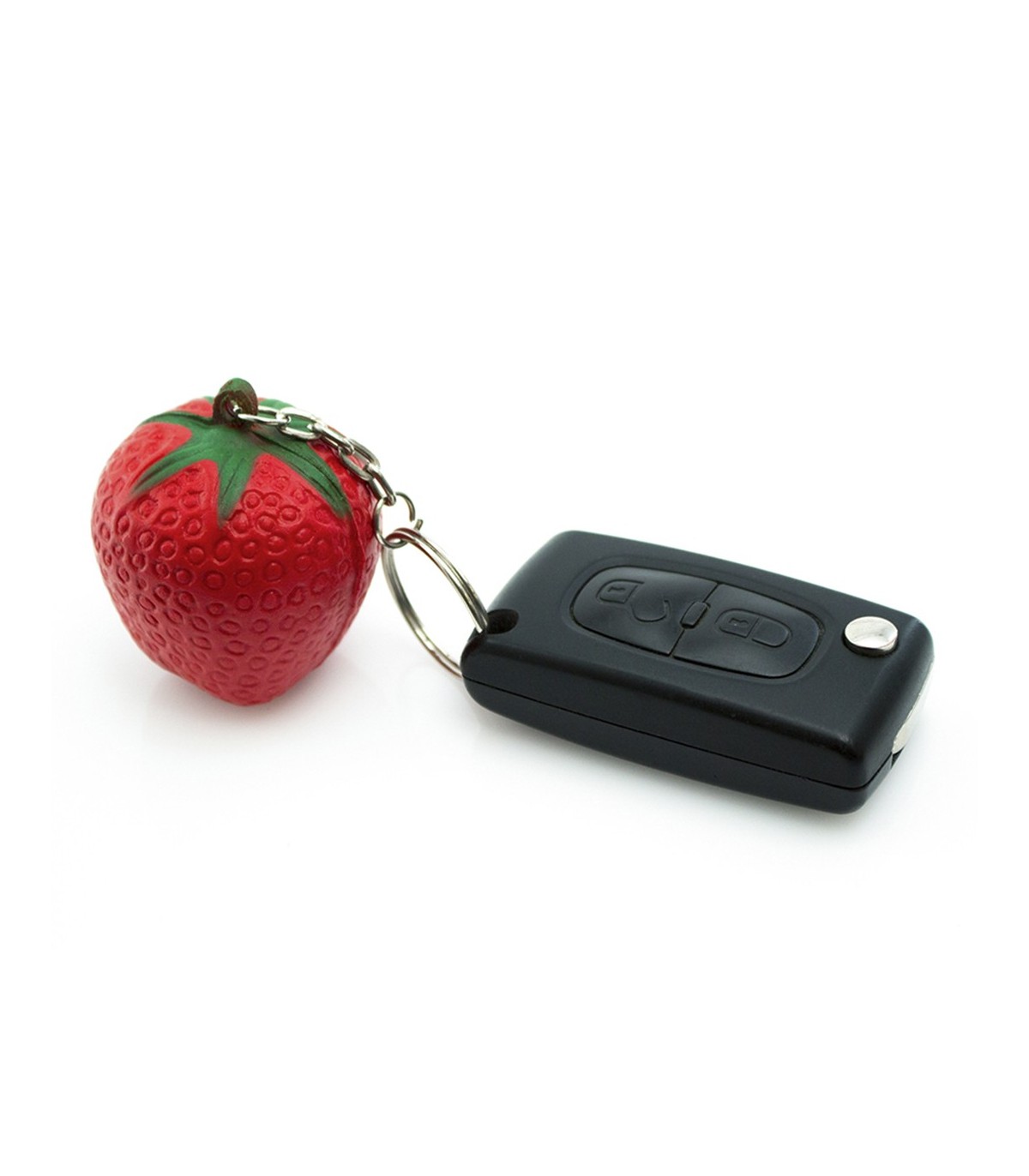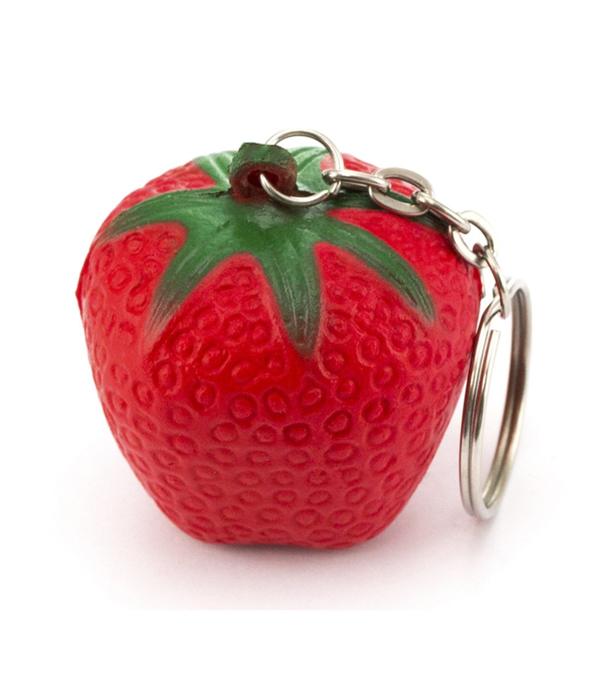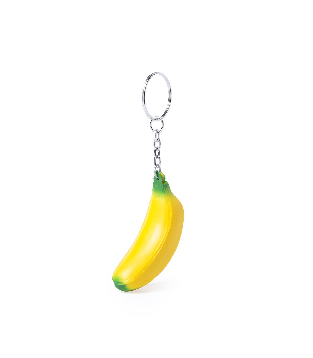 Llaveros antiestres con 7 formas frutales divertidas y muy originales fabricado en poliuretano muy suaves al tacto personalizados para merchandising de empresas.