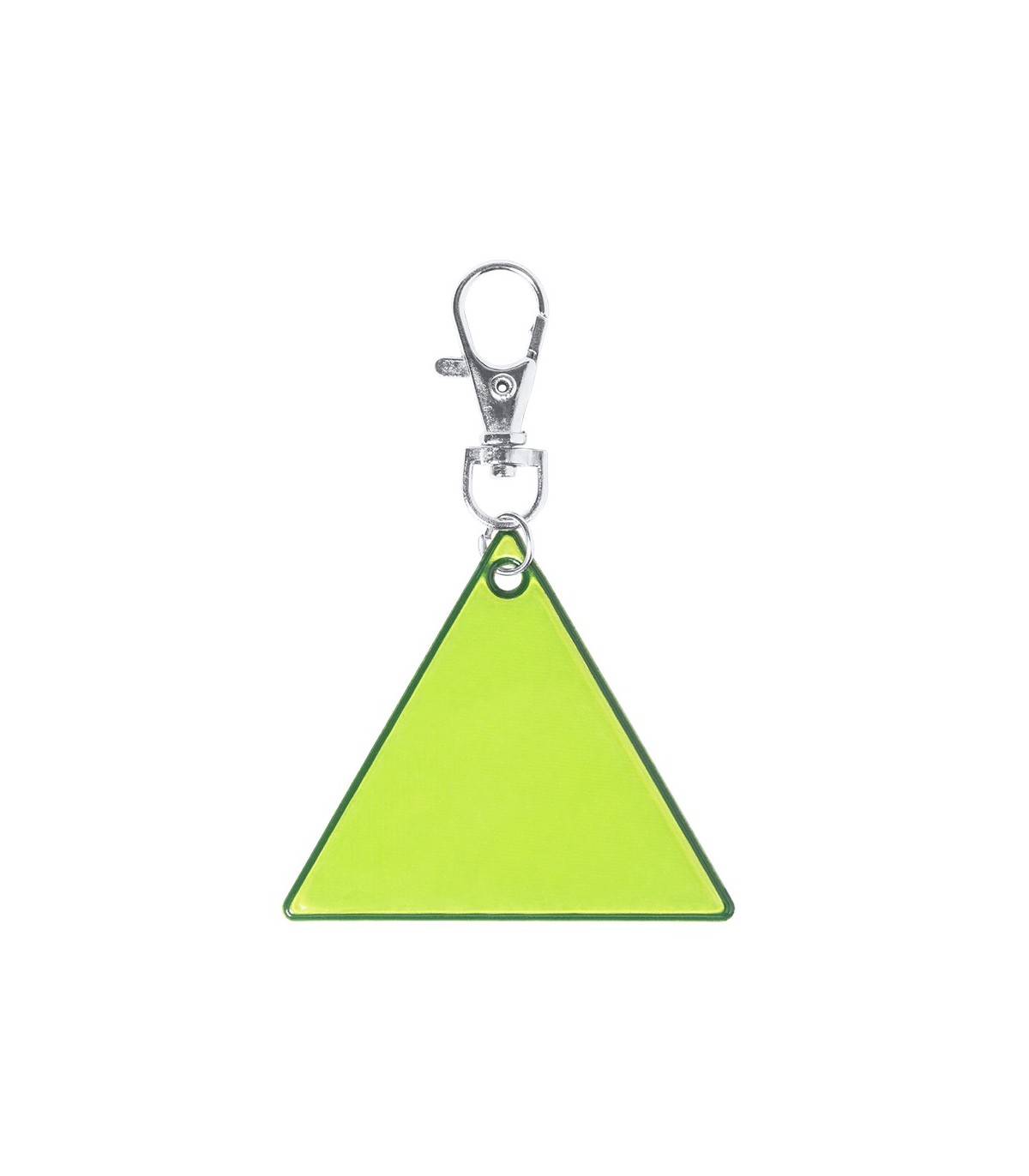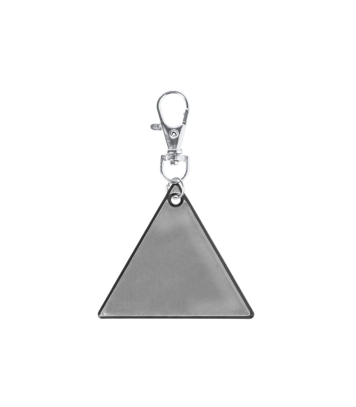 Llavero de diseño triangular en PVC reflectante de alta visibilidad y con cierre mosquetón.