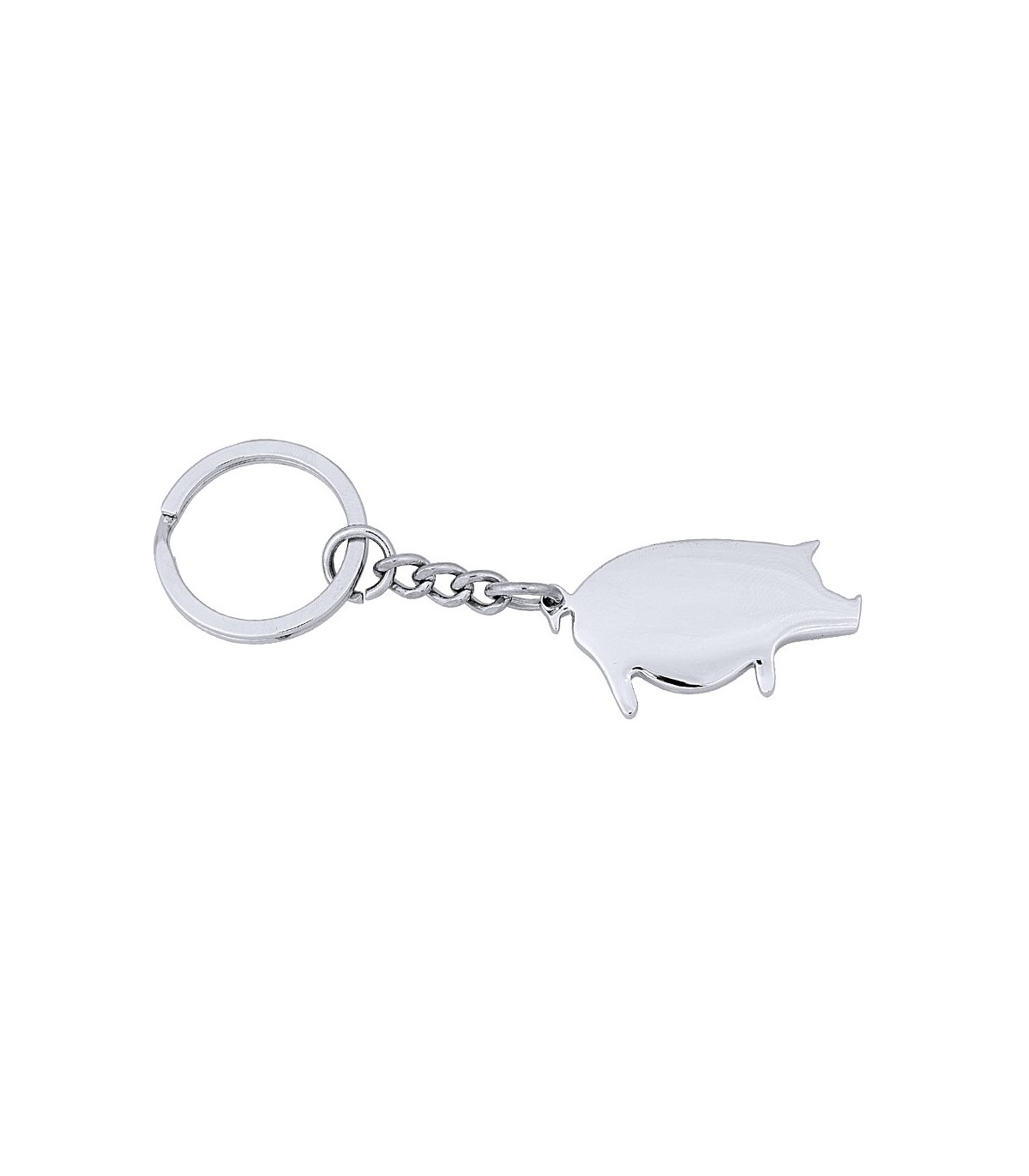Llavero metálico de divertido diseño cerdito de acabado brillante. Presentado en estuche individual negro con troquelado interior.