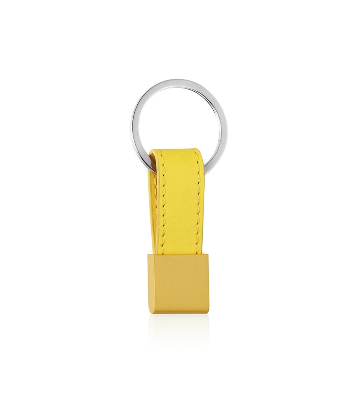 Llavero con cuerpo acabado en polipiel de vivos y varios colores para imprimir. Con terminación metálica a juego especialmente diseñada para marcaje en láser.