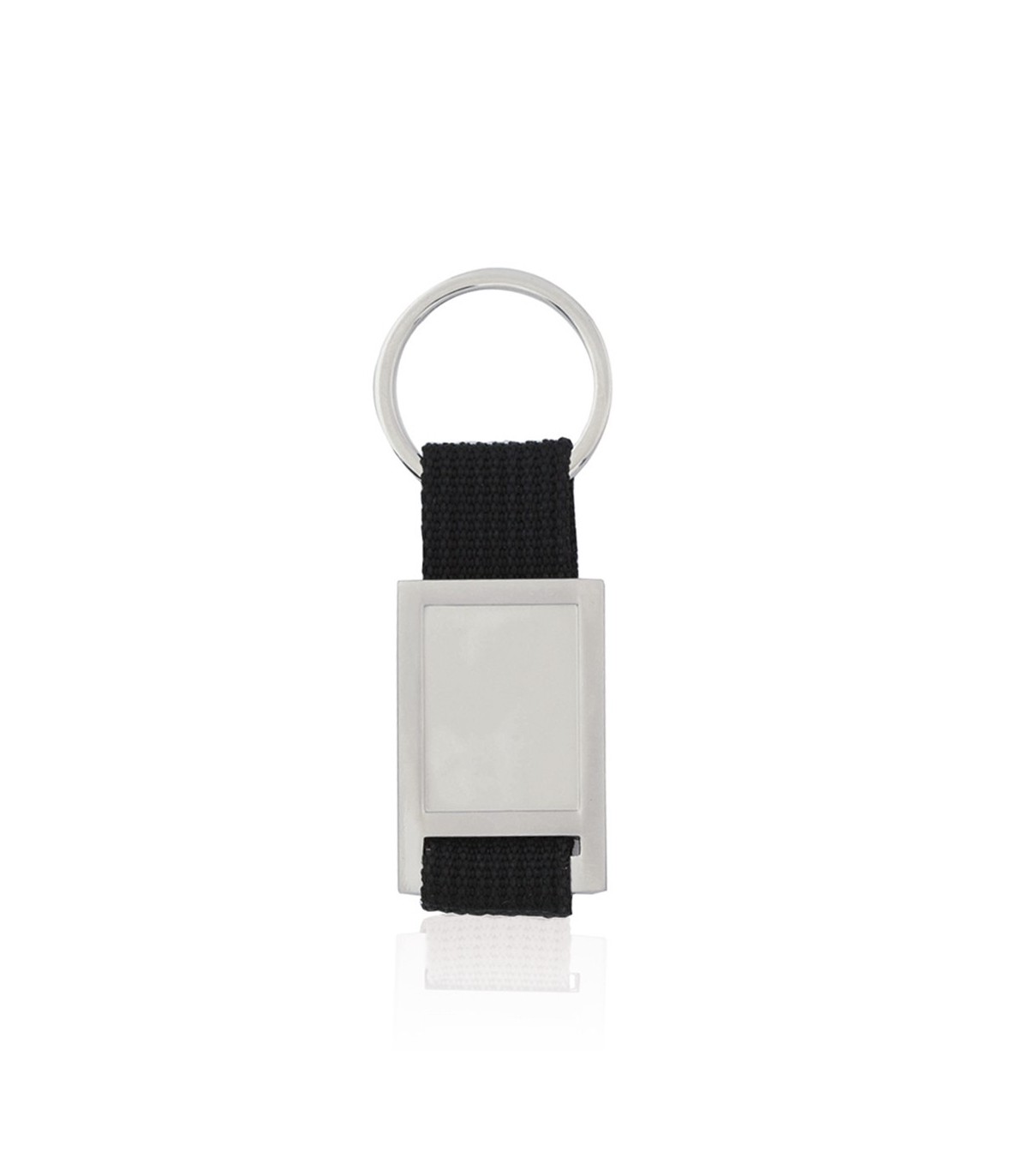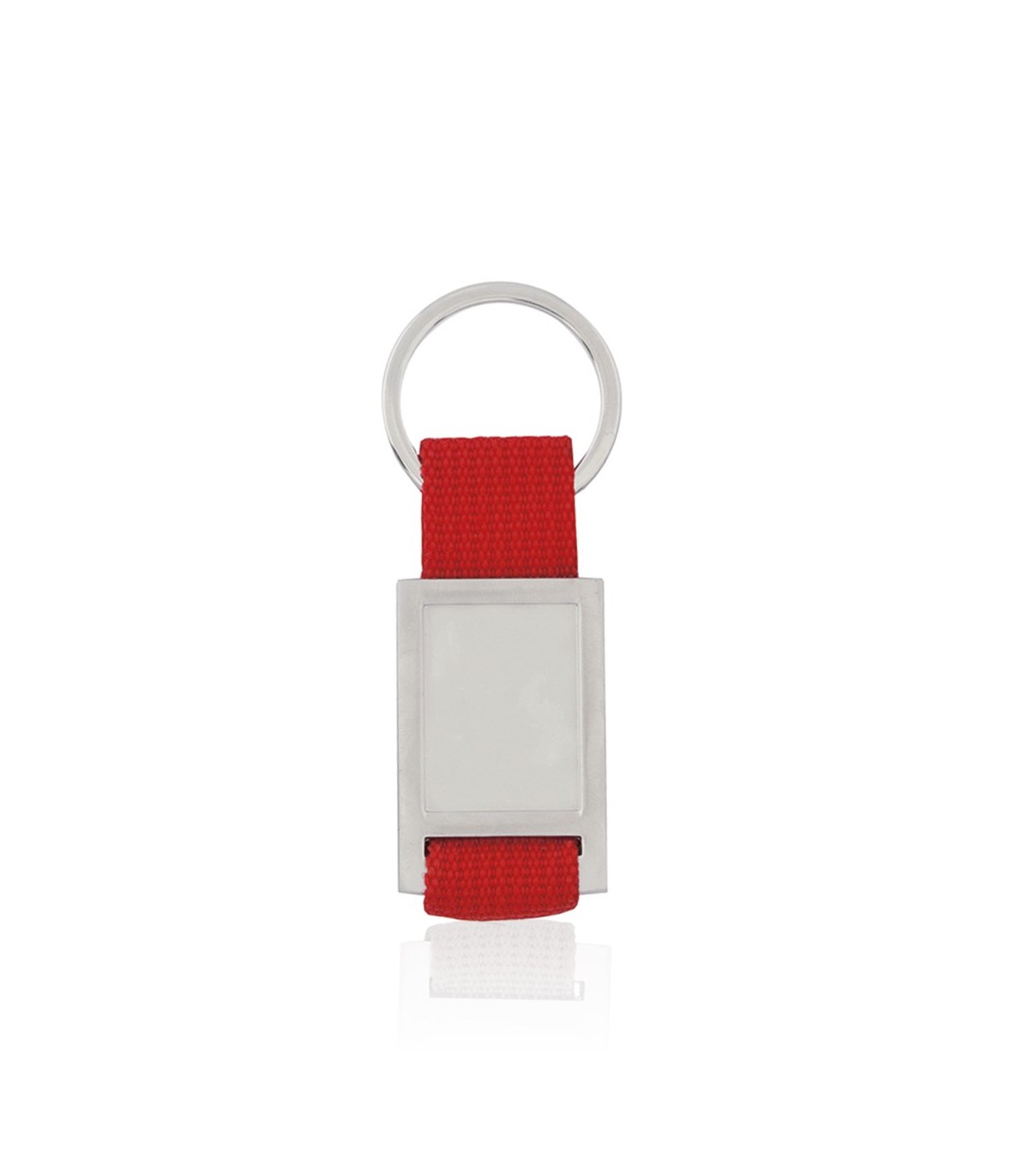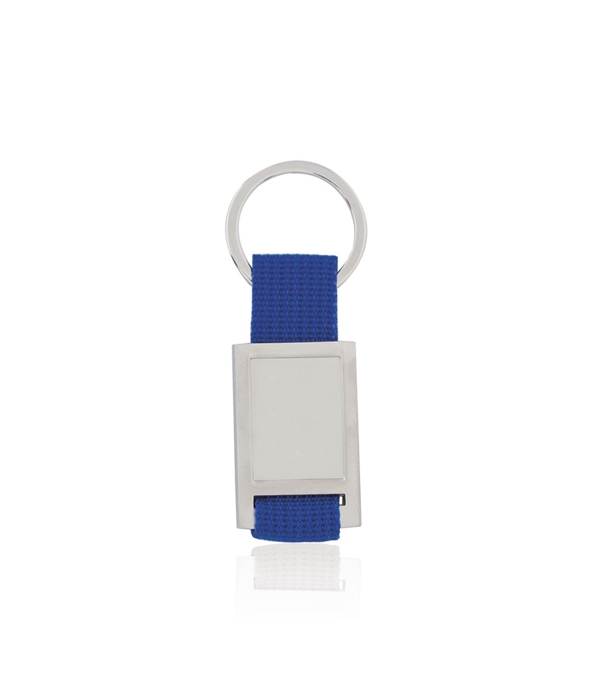 Llaveros económicos con cinta de poliéster y cuerpo metálico en varios colores y personalizados para regalos de empresa como articulo promocional.