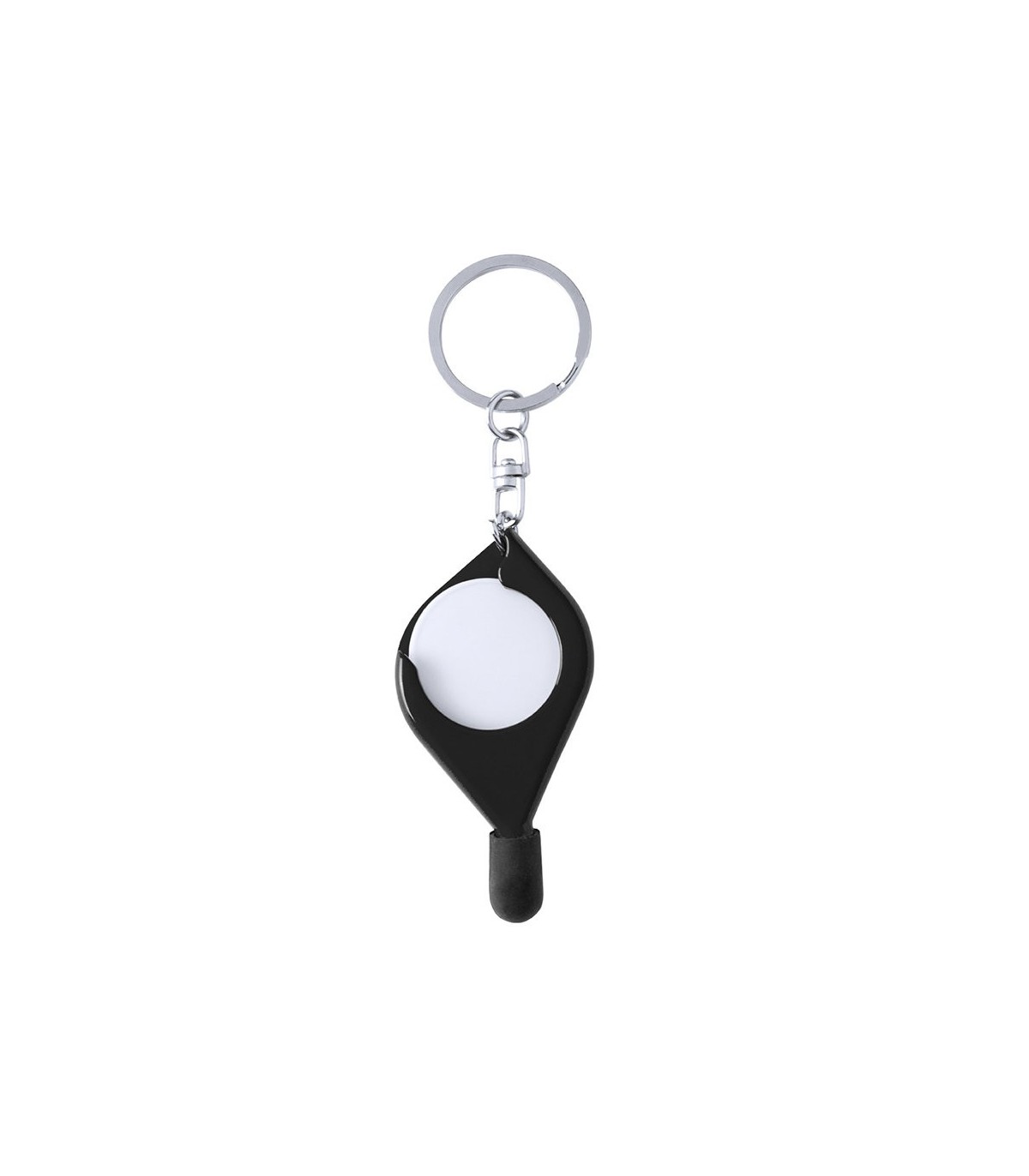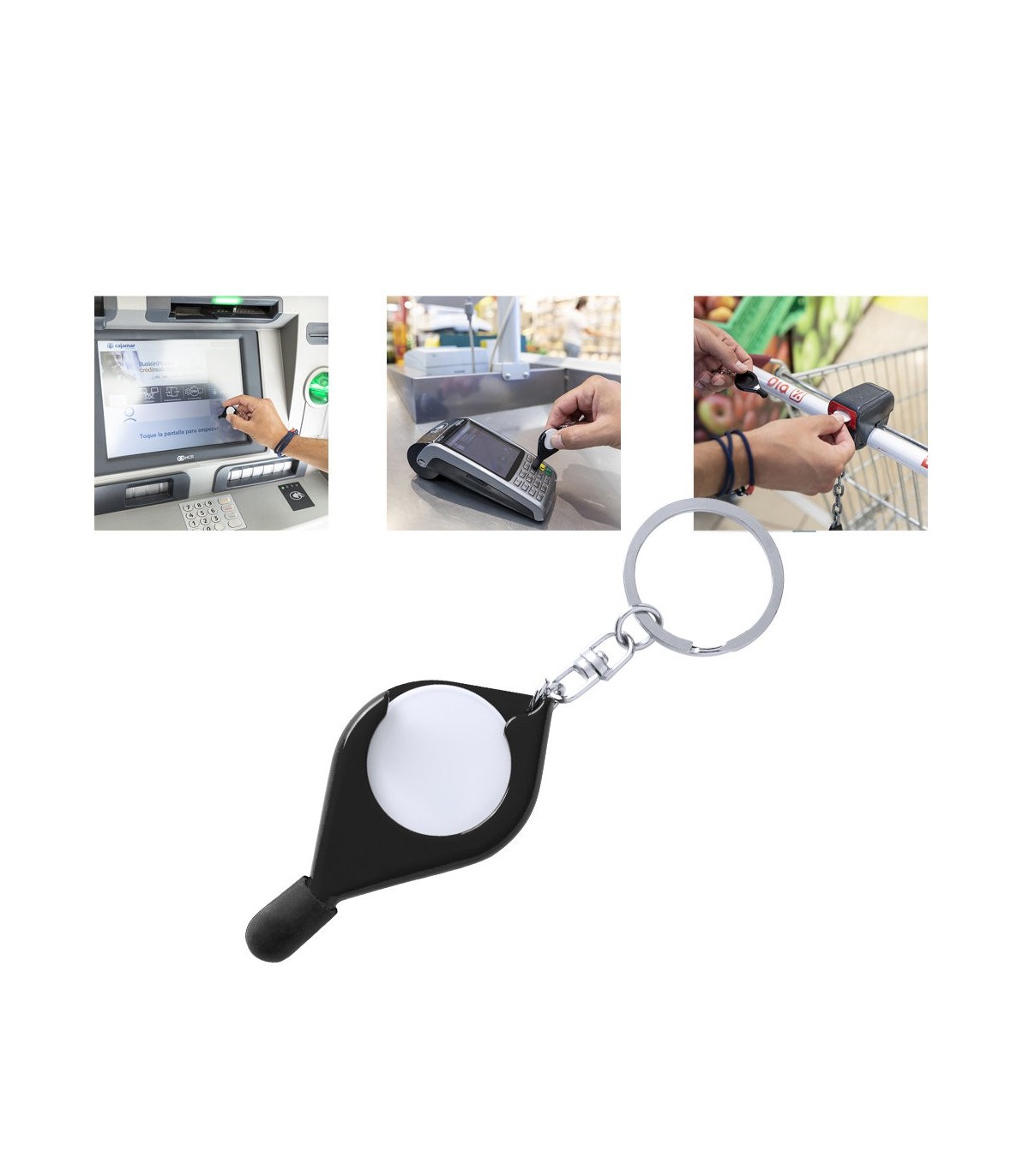 Llavero moneda en variados colores, con puntero táctil para usar con smartphones y moneda extraíble para el carro del super personalizados con tu marca.