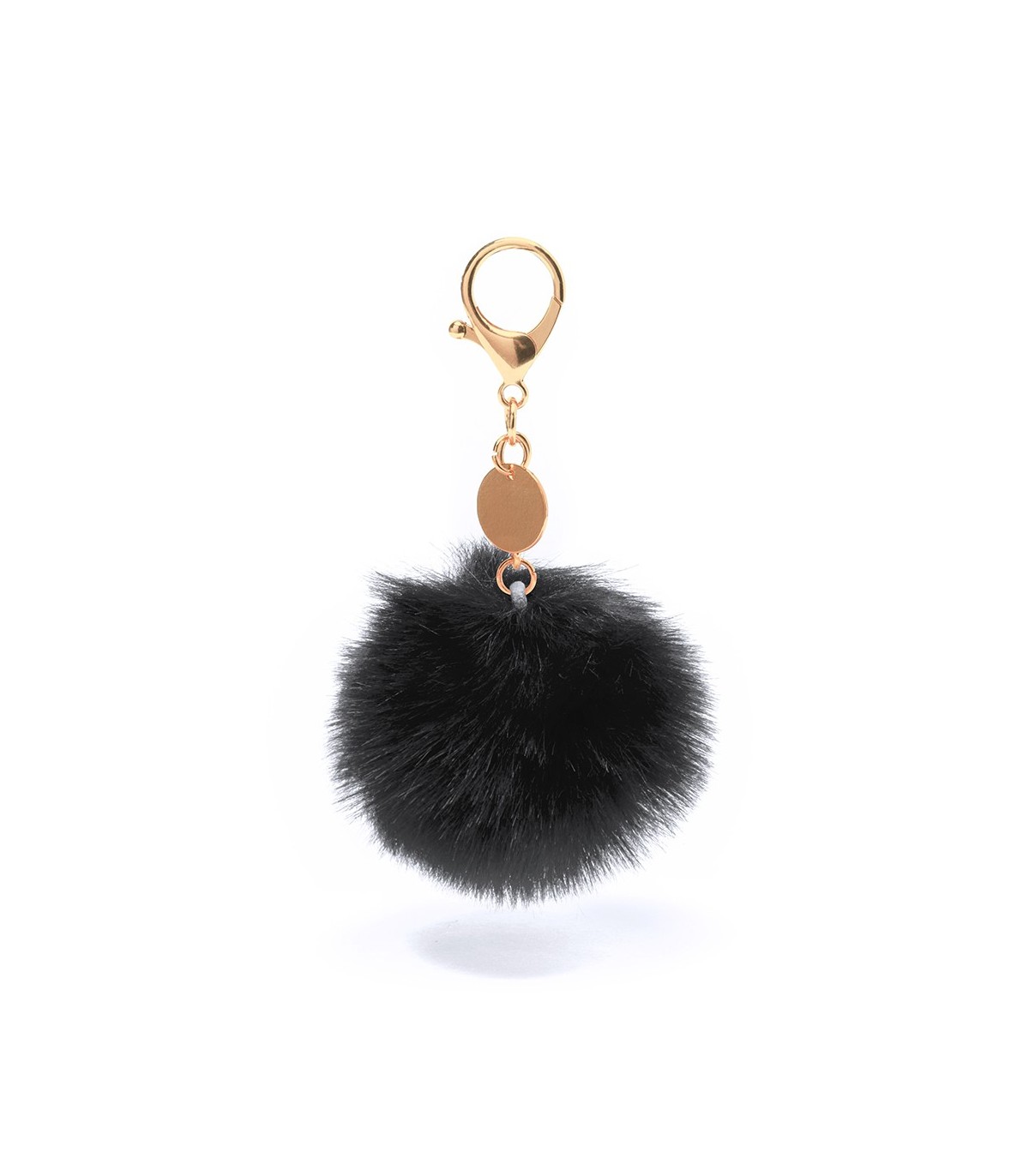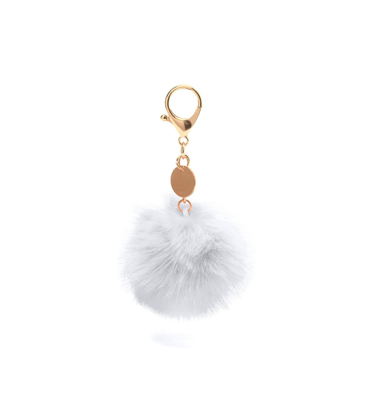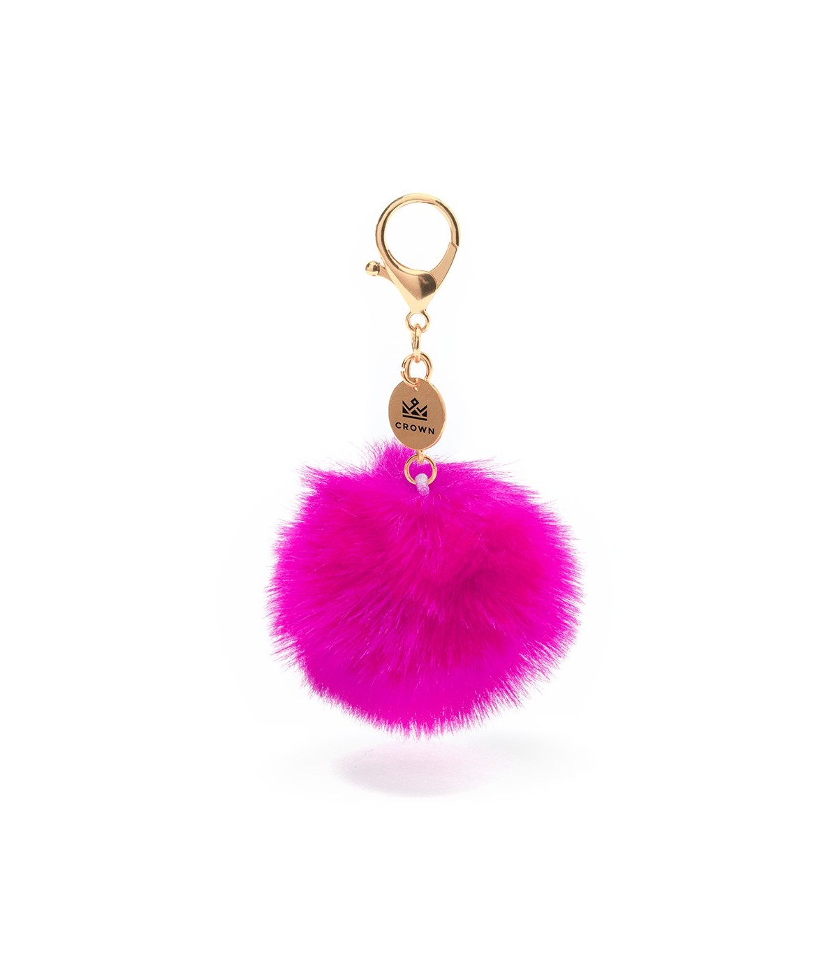 Suave llavero pom pom en vivos colores. Con chapa dorada para marcaje.